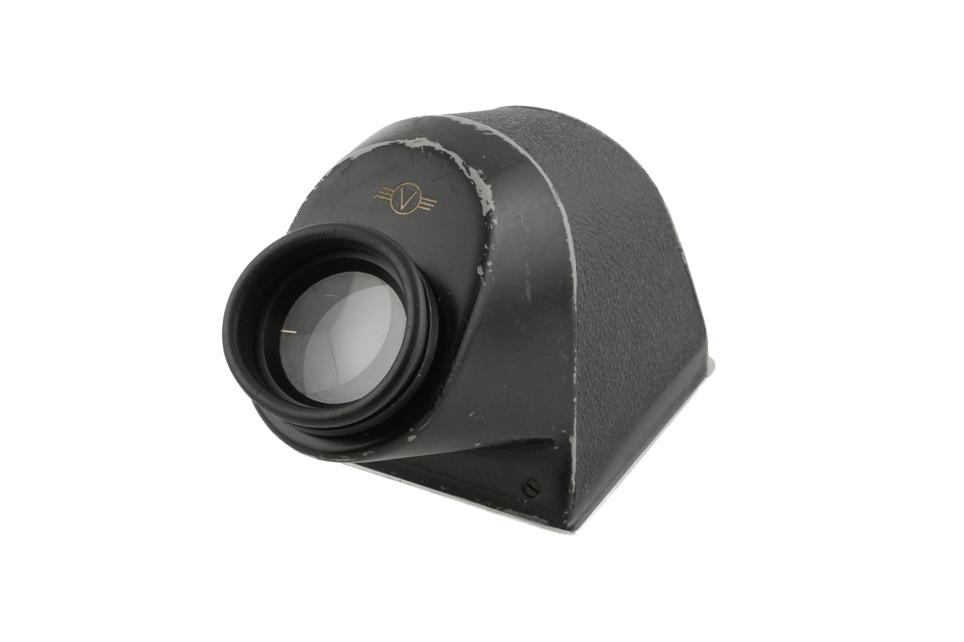 Prism finder made for V series 120 SLR cameras introduced by Hasselblad starting in 1963. Novoflex handled production for some time as well. This finder can accept corrective diopters and rubber eyepieces. Provides a 3x magnification of the focusing screen. Metal body available in black.
