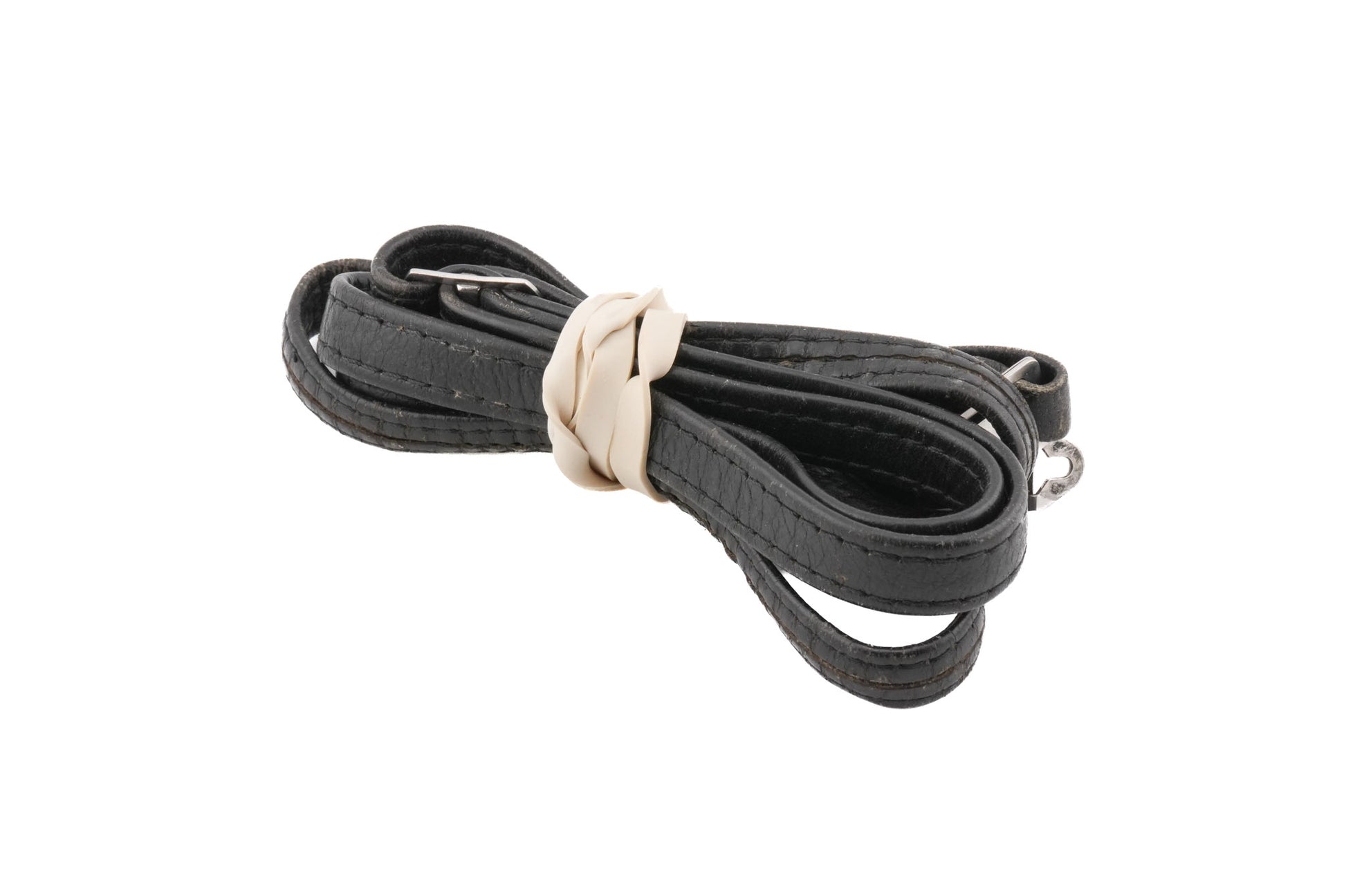 Leather strap made by Hasselblad for Hasselblad V system cameras. Black leather and metal lugs.