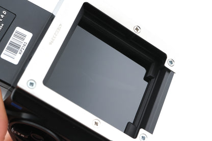 Prism finder made for V series 120 SLRs by Hasselblad starting in 1994. It has a built-in light meter and gives a 45º angle of view. This prism was originally calibrated for Acute Matte focusing screens and must be recalibrated if used with older screens. Metal body available in black.