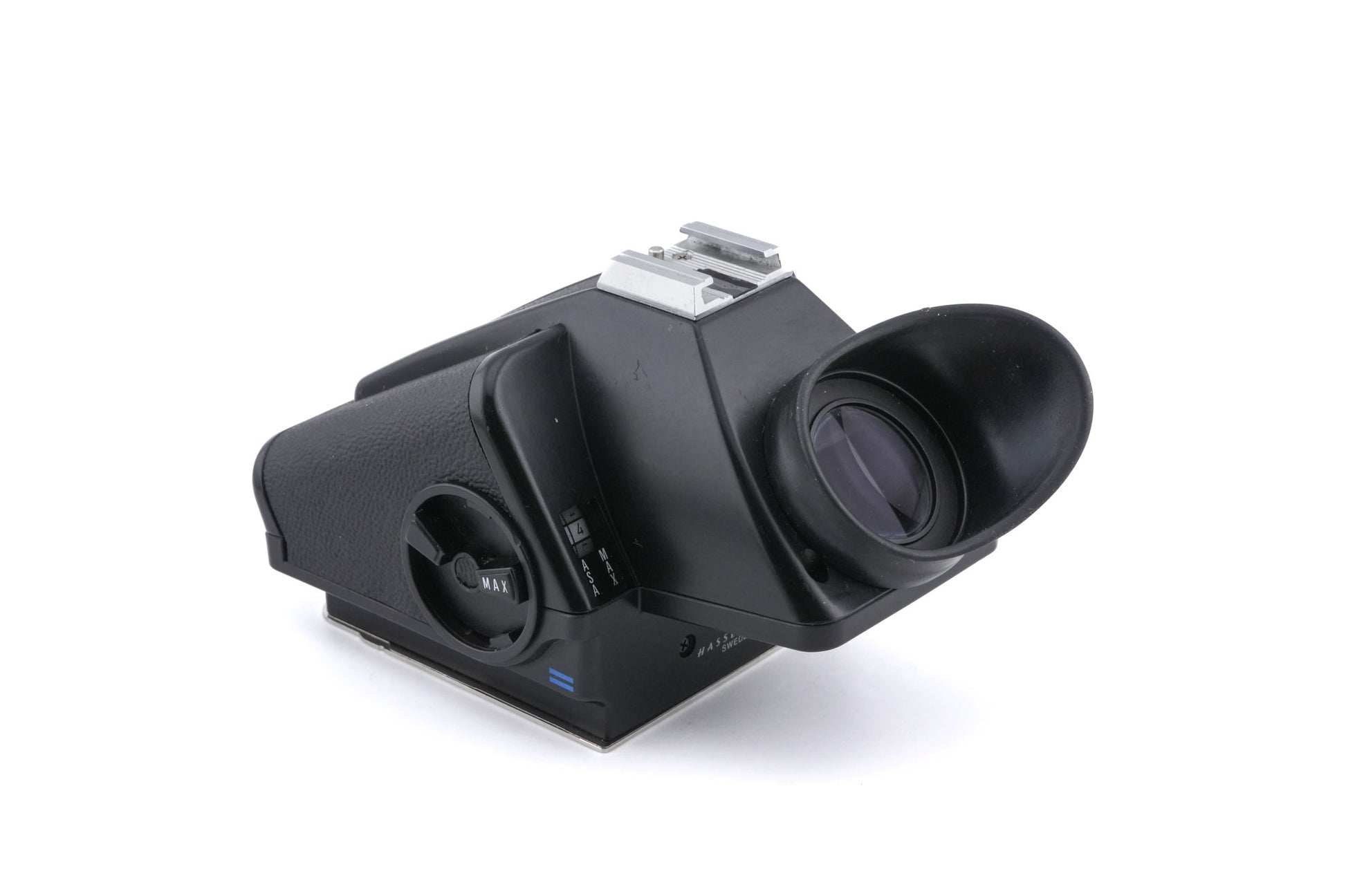 Prism finder made for V series 120 SLRs by Hasselblad starting in 1994. It has a built-in light meter and gives a 45º angle of view. This prism was originally calibrated for Acute Matte focusing screens and must be recalibrated if used with older screens. Metal body available in black.