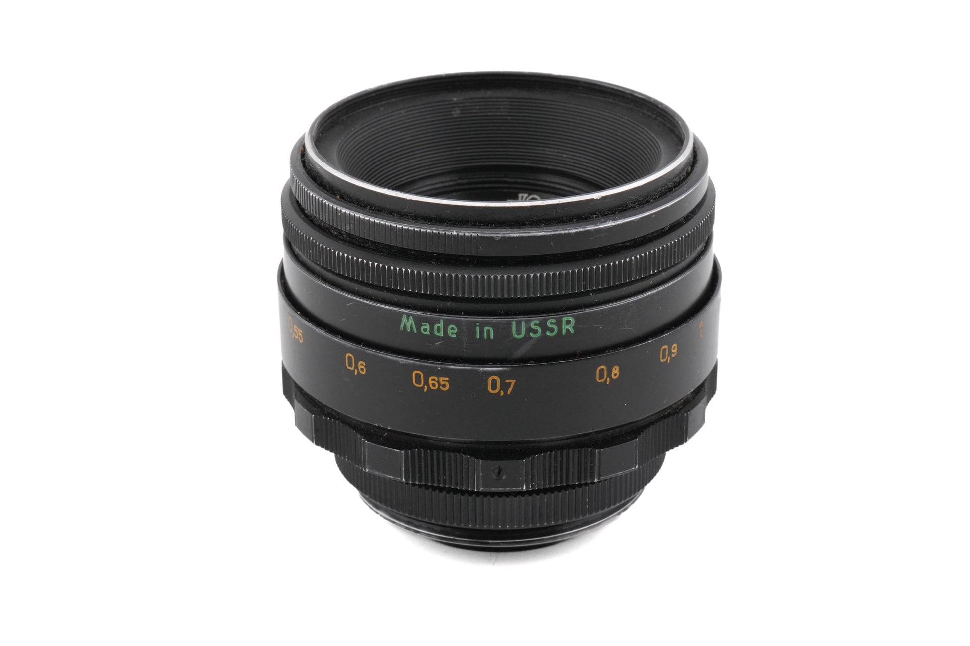 Manual focus normal lens made for M42 mount 35mm SLR cameras in the former Soviet Union. The lens is an optical copy of the Carl Zeiss 58mm f2 Biotar. Metal body available in black.