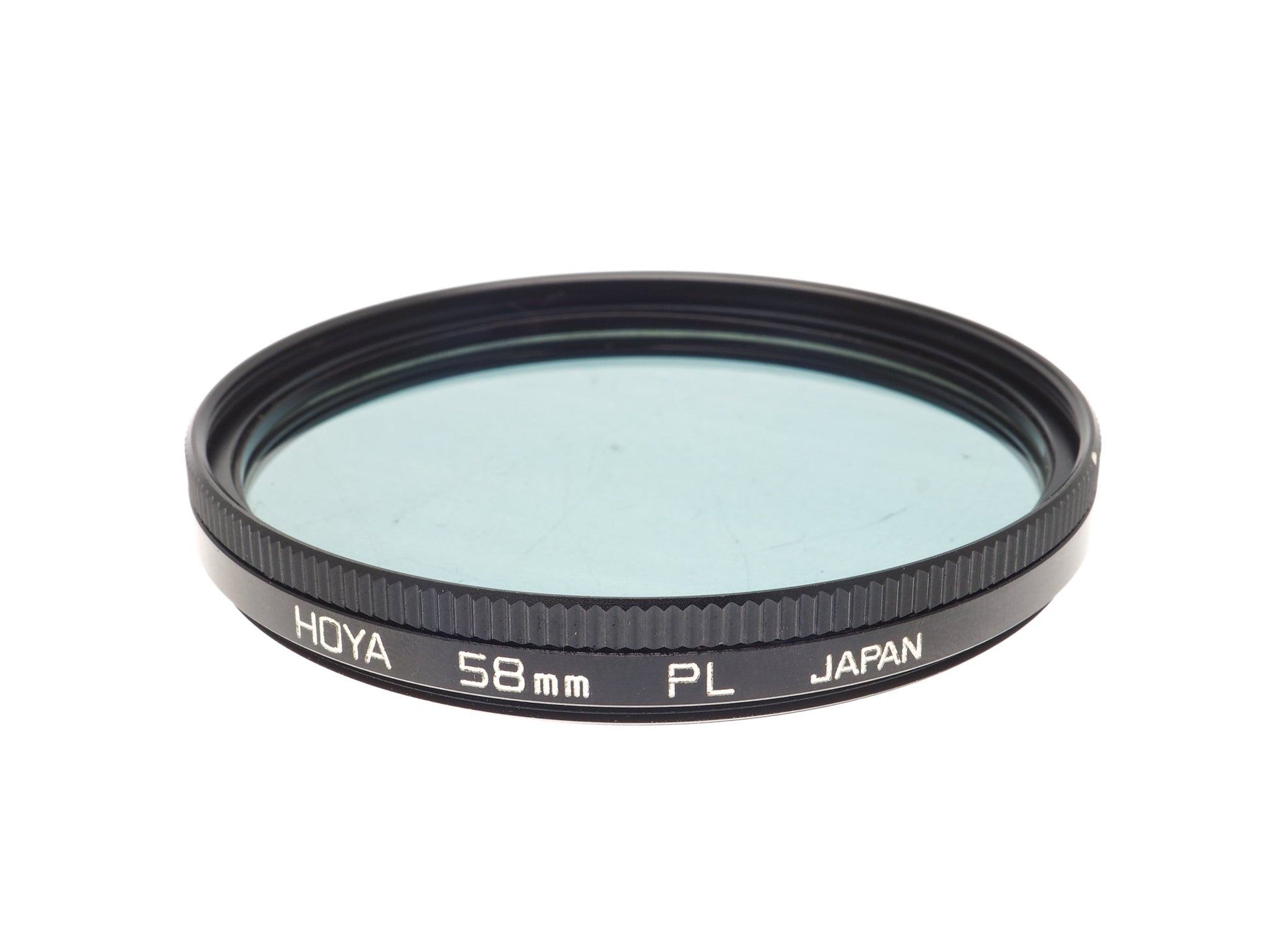 Circular polarizing filter for use on lenses with a 58mm filter thread made by Hoya. Available in black plastic.