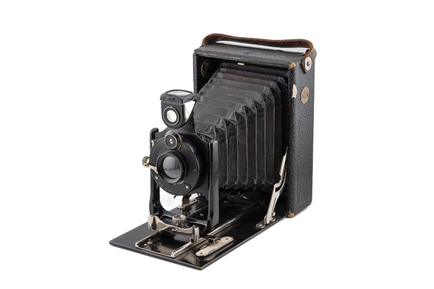 Manual focus 9x12cm plate folding large format camera released by ICA between 1914 and 1926. Was manufactured with different shutter and lens combinations. Wood and metal body available in brown.
