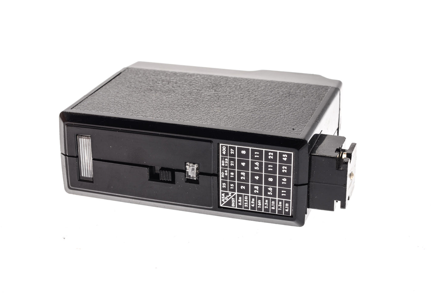 Compact flash from Kakonet for all cameras with hot shoe or PC sync connectors. Has a single strength, one contact pin for manual flash control, and no articulation.