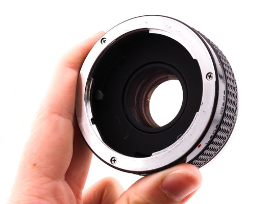 2x teleconverter from Kenko for Olympus OM 35mm SLRs. This teleconverter was made for almost every popular mount and doubles your lens' focal length at the cost of some sharpness and contrast.