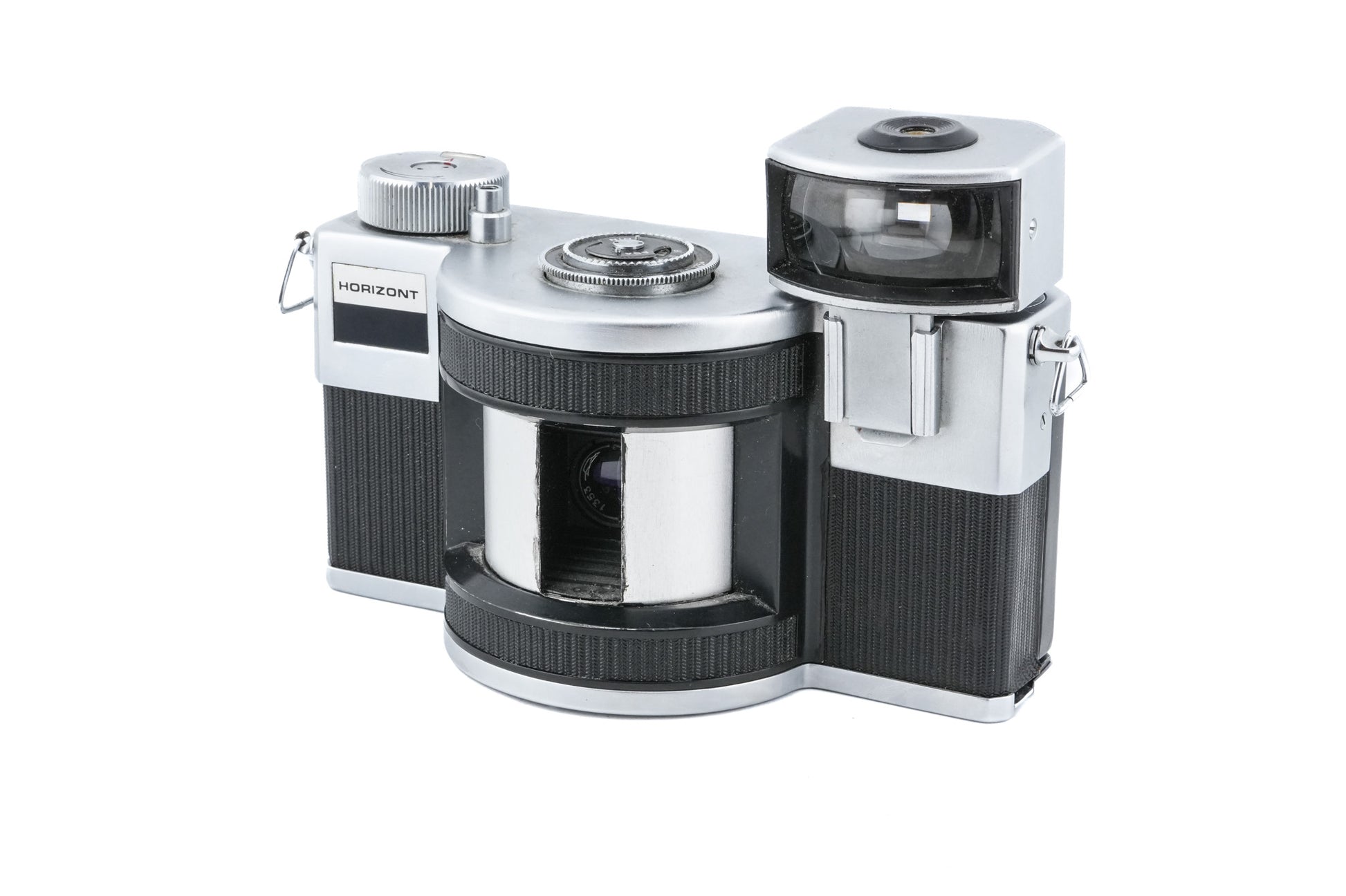 Fixed focus swing-lens panoramic 35mm camera released by KMZ in the Soviet Union. Metal body available in silver.