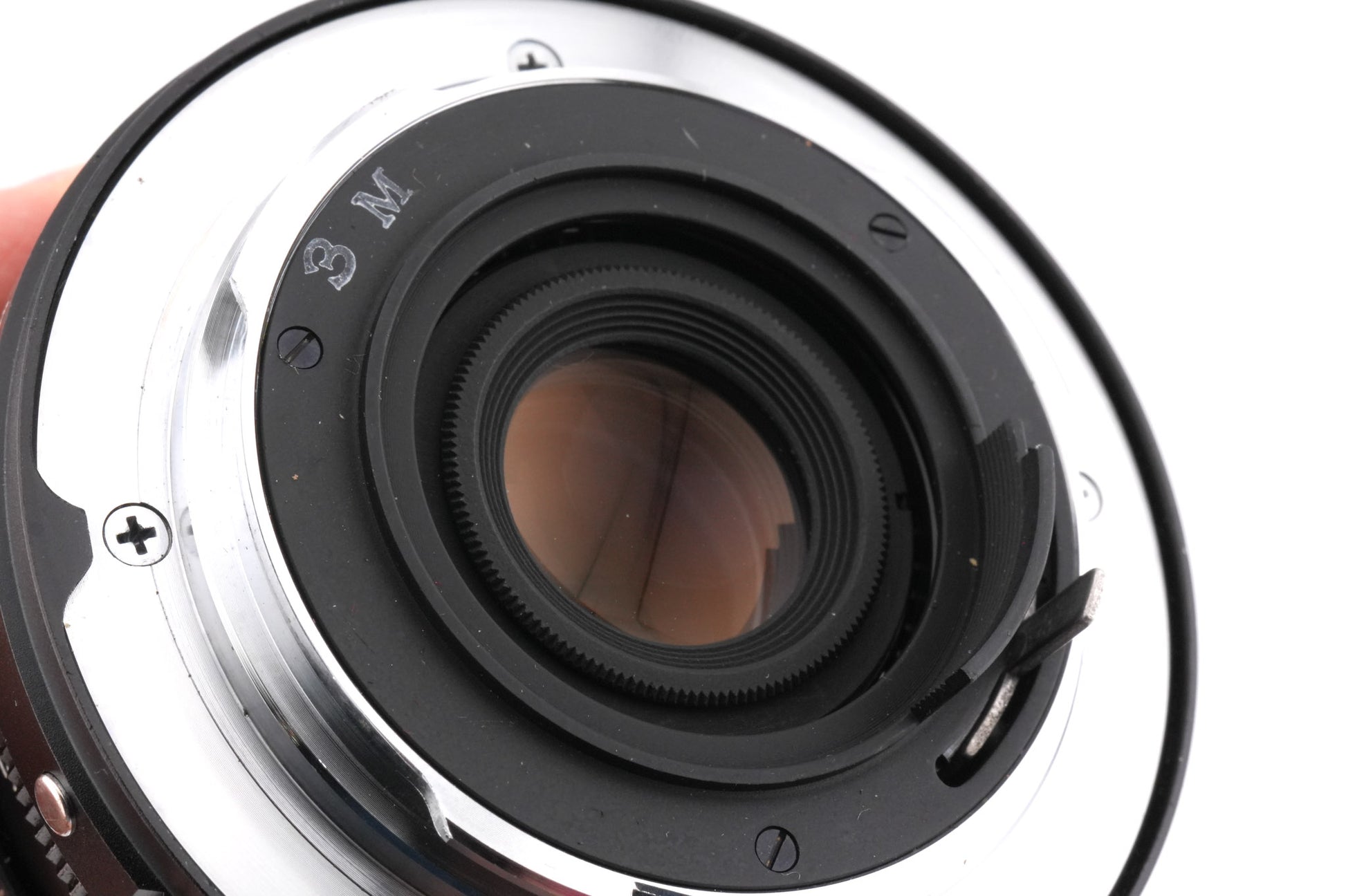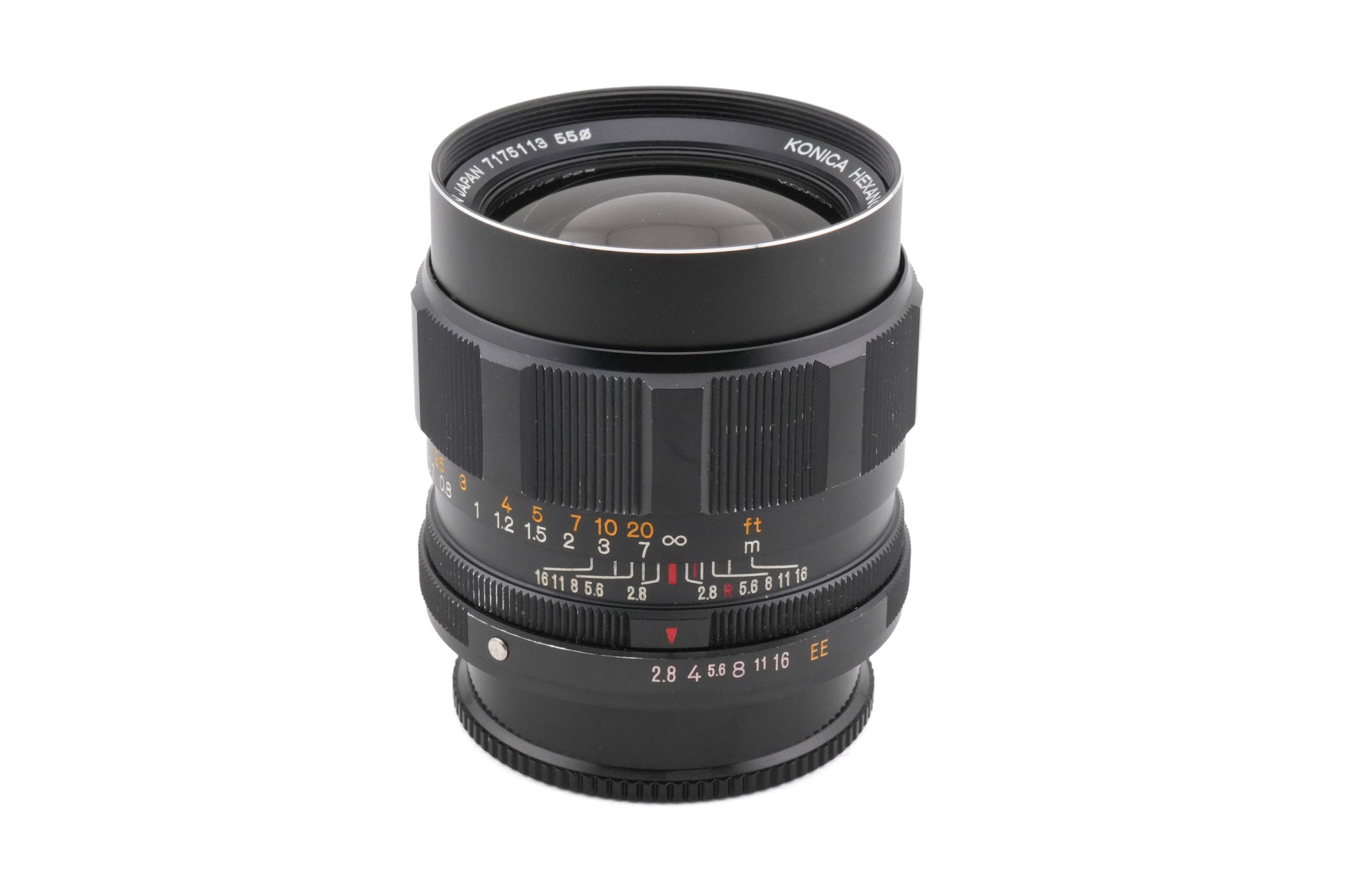 Manual focus wide normal lens made for AR mount SLRs by Konica starting in 1965. Older versions have scalloped focusing rings, and newer ones have rubber rings. Metal body available in black.
