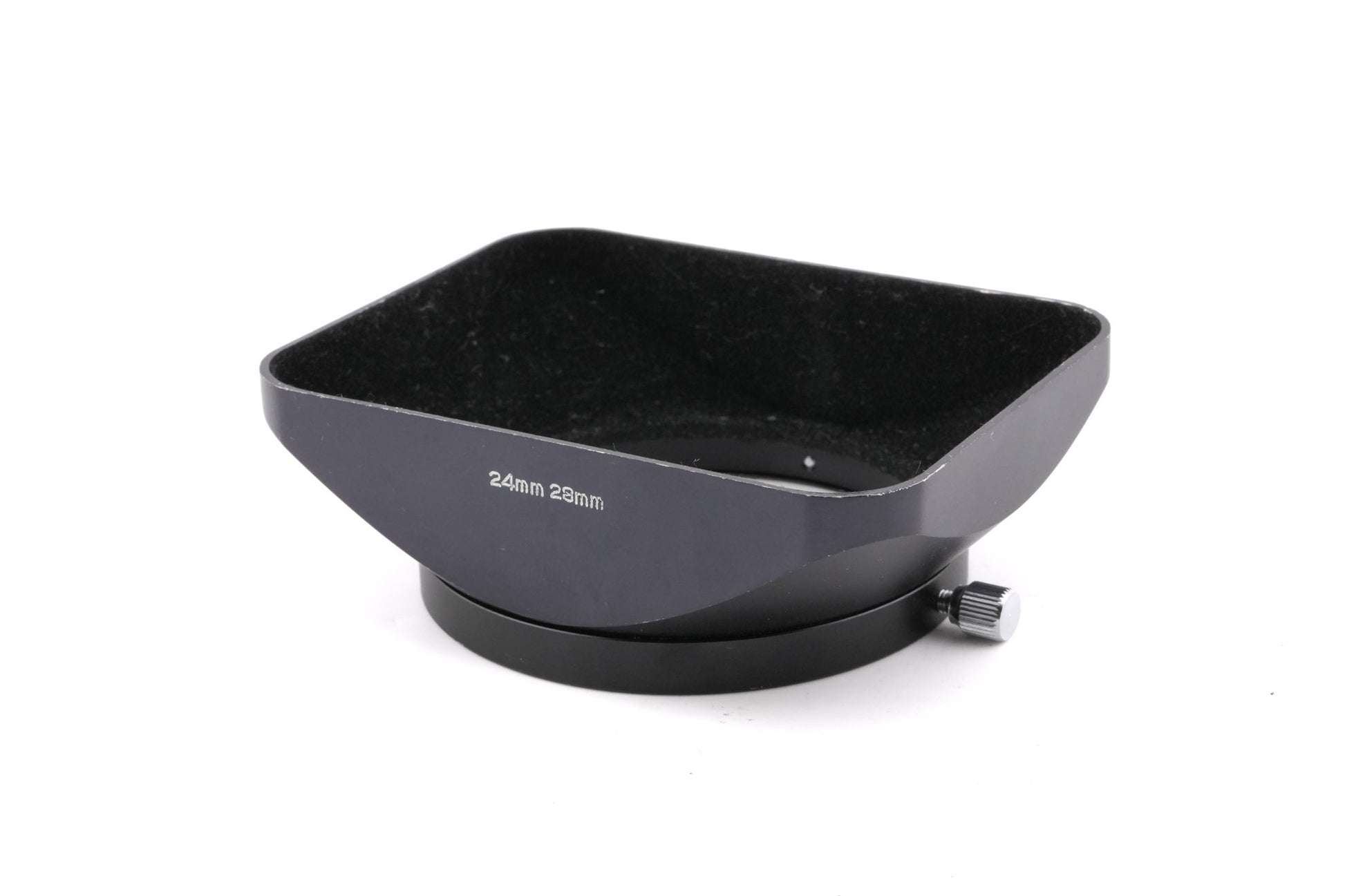 Lens hood made by Konica for 24mm and 28mm Hexanon lenses. It attaches via a tightening knob. Metal body available in black.