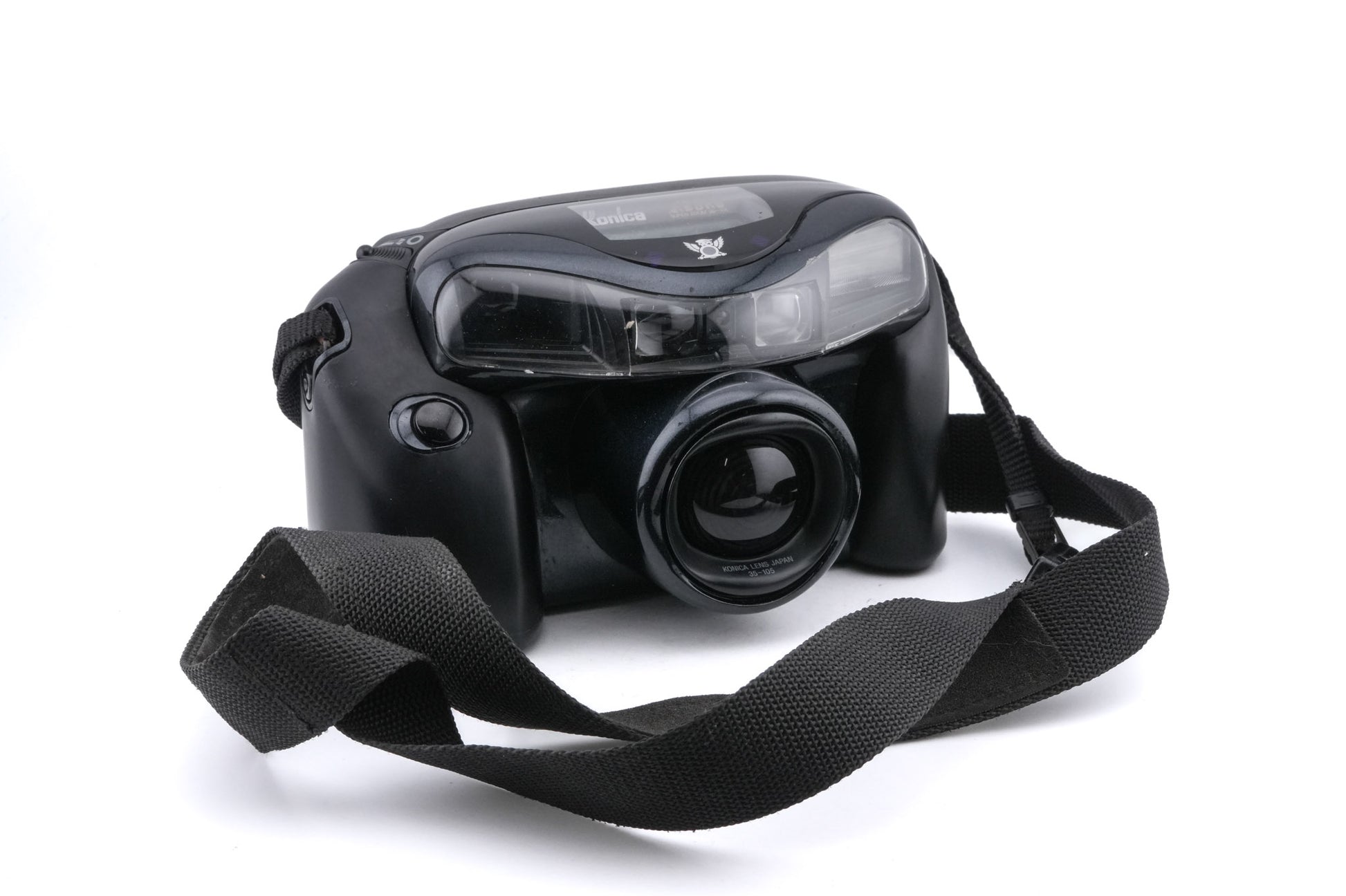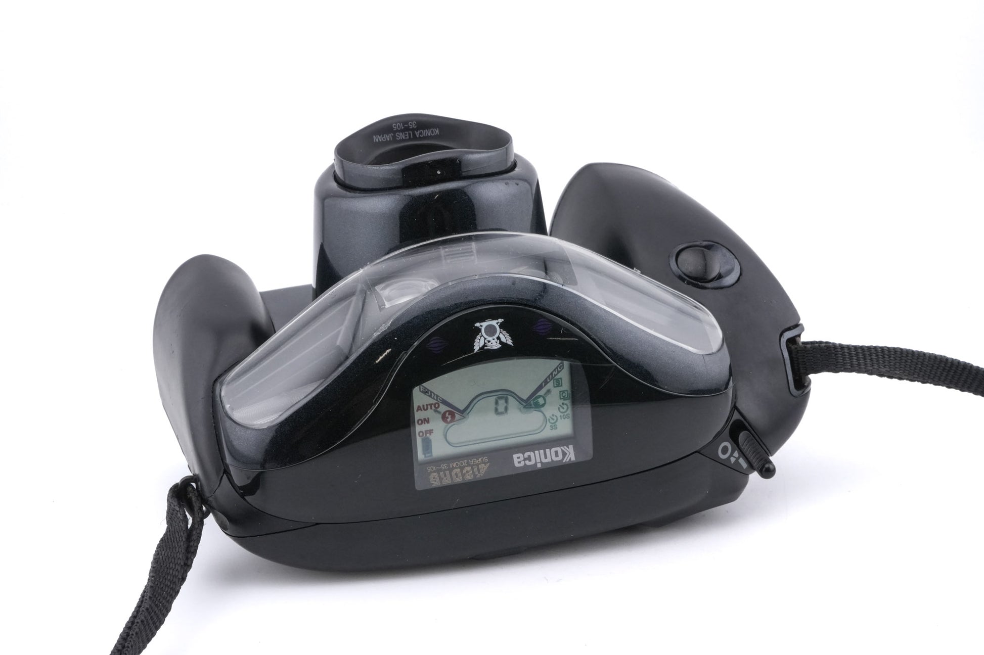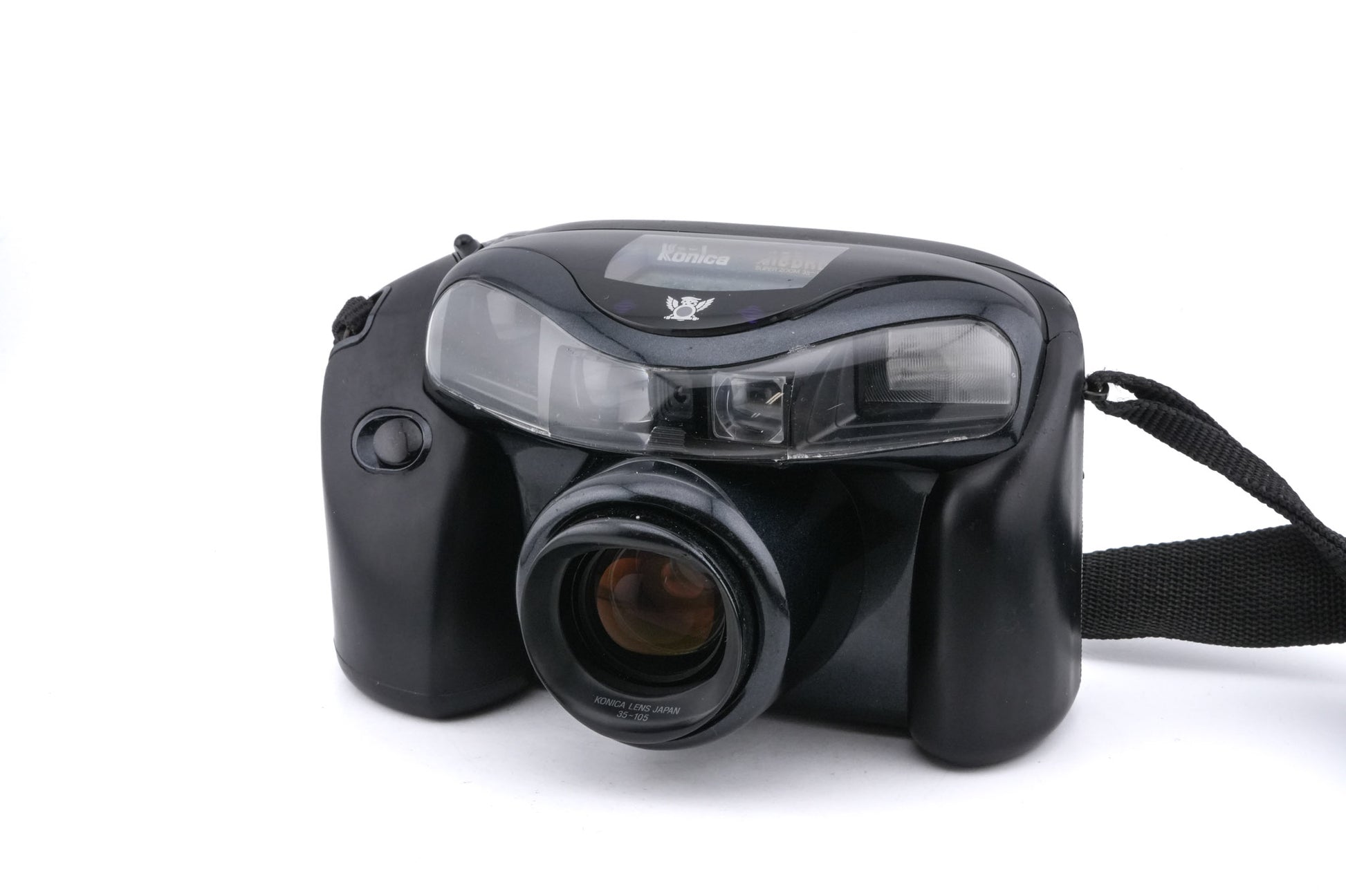 Autofocus 35mm point-and-shoot camera released by Konica in 1991. It is colloquially known as the "Darth Vader" camera due to its large top plate and includes a number of automated exposure modes. Plastic body available in black.