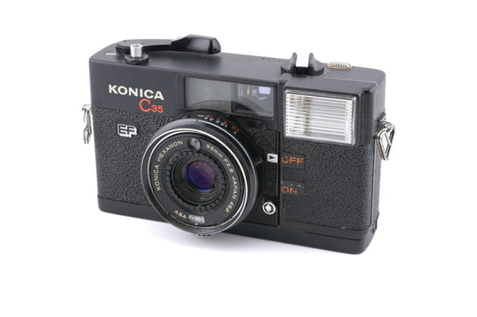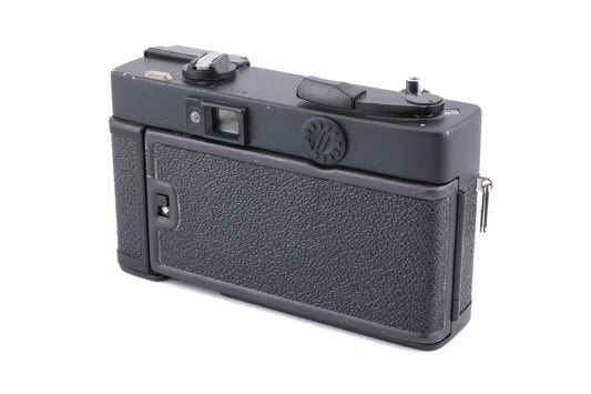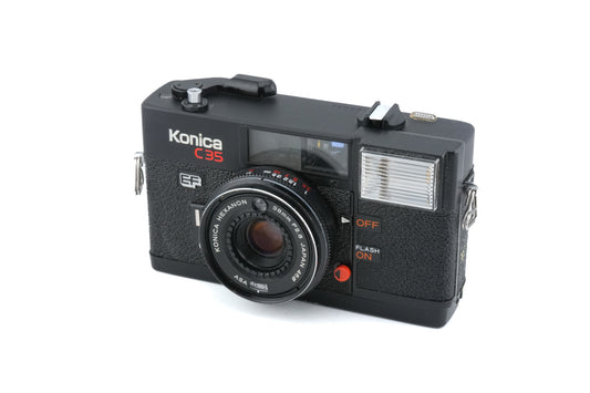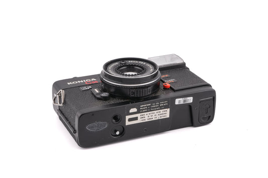 Manual focus 35mm compact camera made by Konica in 1975. It had the nickname "Pikkari" in Japan and was the only 35mm compact camera with a built-in electronic flash. Plastic body available in black.