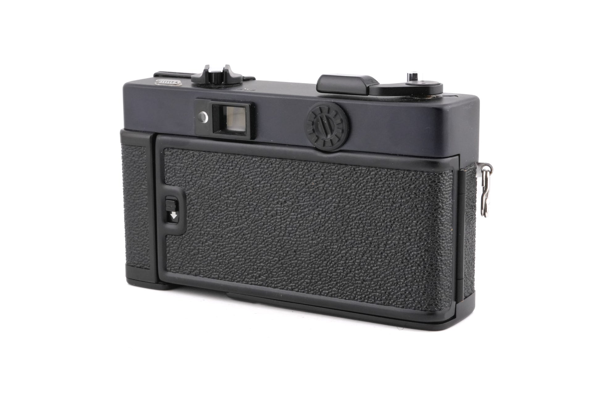 Manual focus 35mm compact camera made by Konica in 1975. It had the nickname "Pikkari" in Japan and was the only 35mm compact camera with a built-in electronic flash. Plastic body available in black.