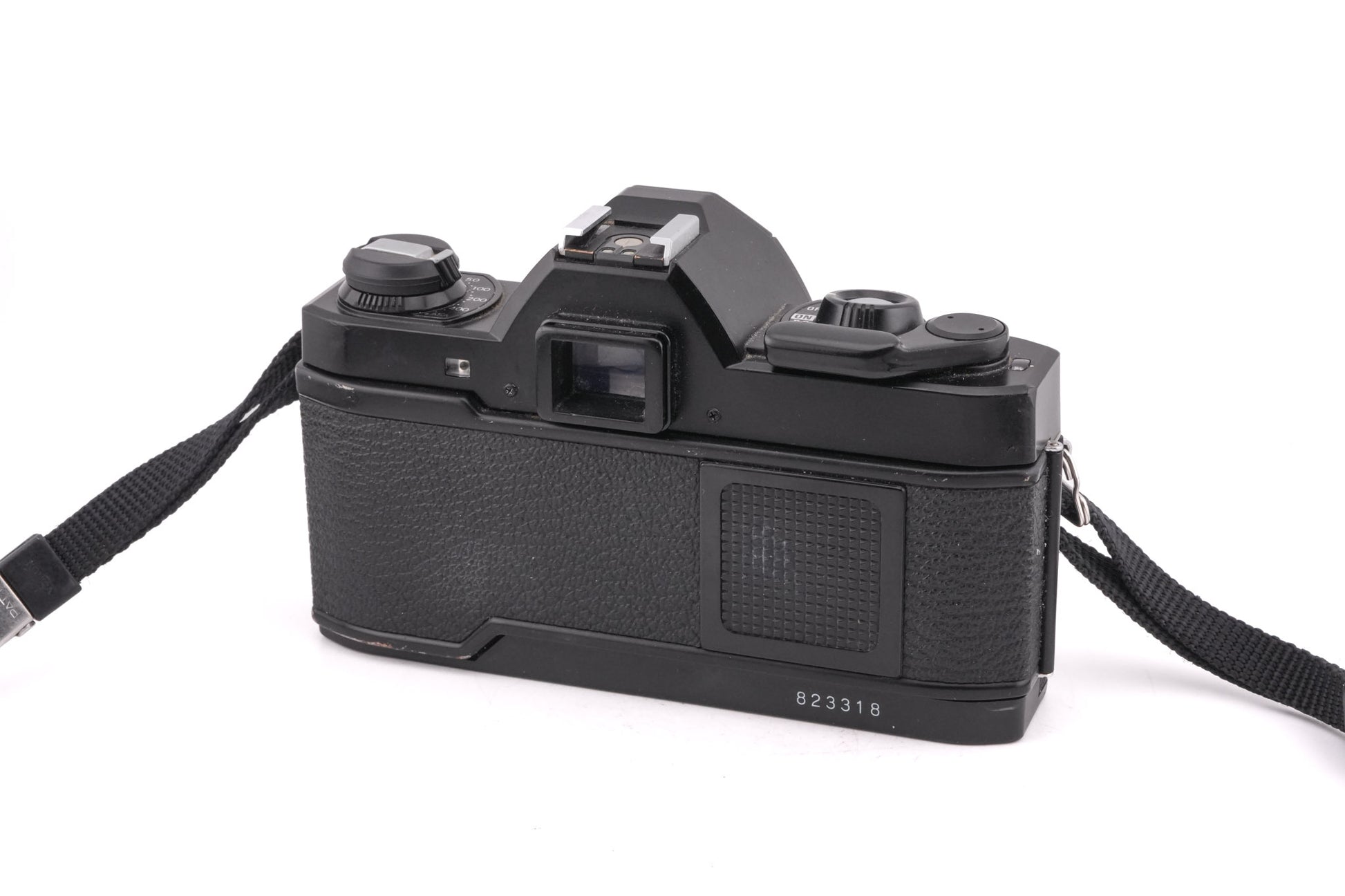 Manual focus AR-mount 35mm SLR camera made by Konica. In AE mode the camera operated with only 3 possible apertures, f2.8, f5.6, or f11, and would use shutter speeds from 1/30 to 1/1000 sec. Metal body available in black.