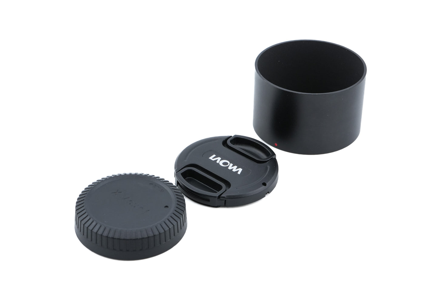 Manual focus telephoto macro lens made for X-mount mirrorless digital cameras introduced by Laowa. It has a 2:1 magnification without extensions but also has infinity focus. It equivalent to a 100mm f4.3 in full frame format. Metal body available in black.