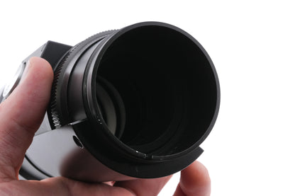 Manual focus telephoto lens made for Leica R mount SLR cameras by Leica. Designed in 1968. Lens has specific screw mount which needs mounting tube to be connected with camera body or visoflex. Metal body available in black.