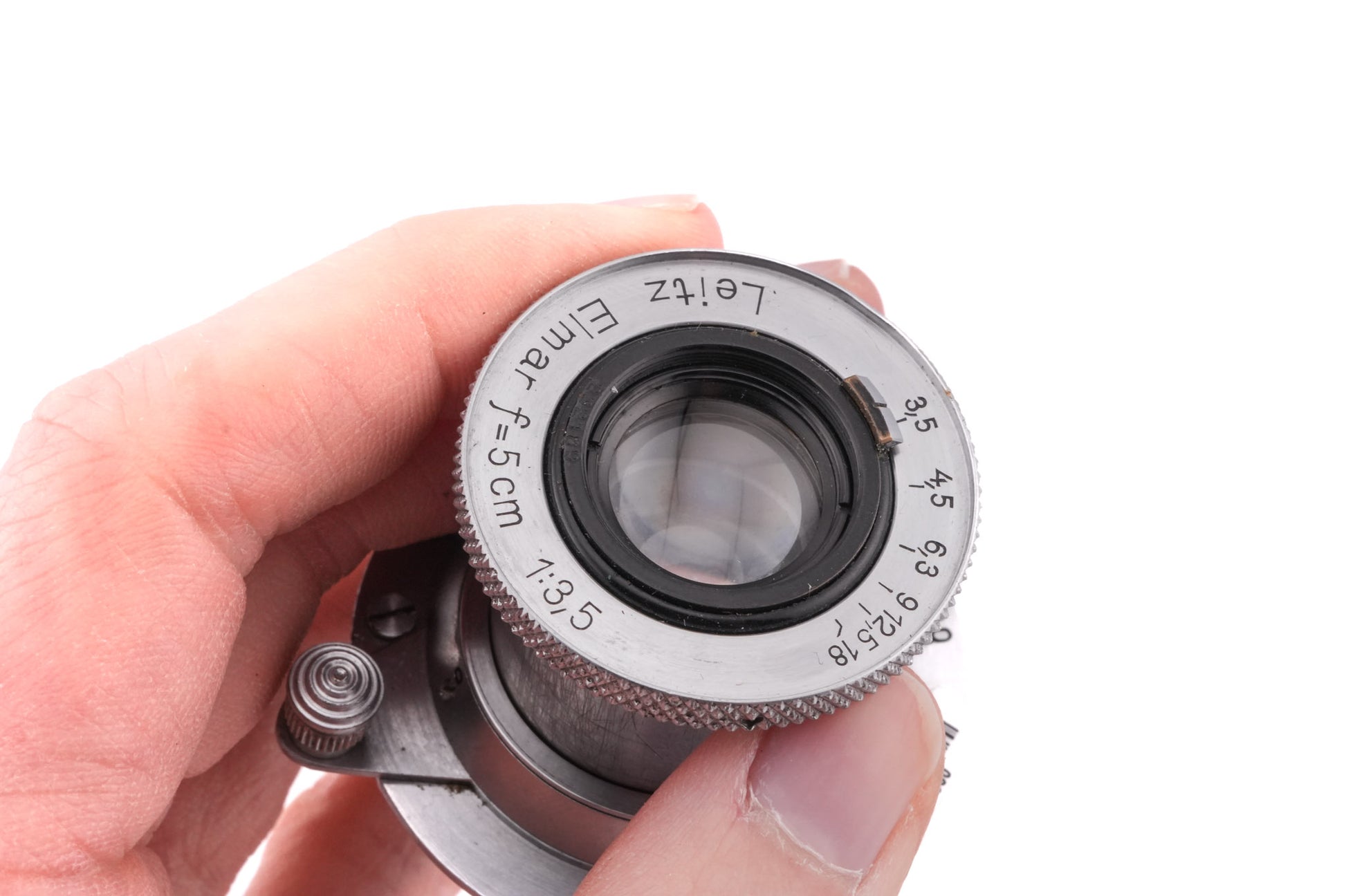 This Leica IIIa + 5cm f3.5 Elmar I (ELMAR) includes:
