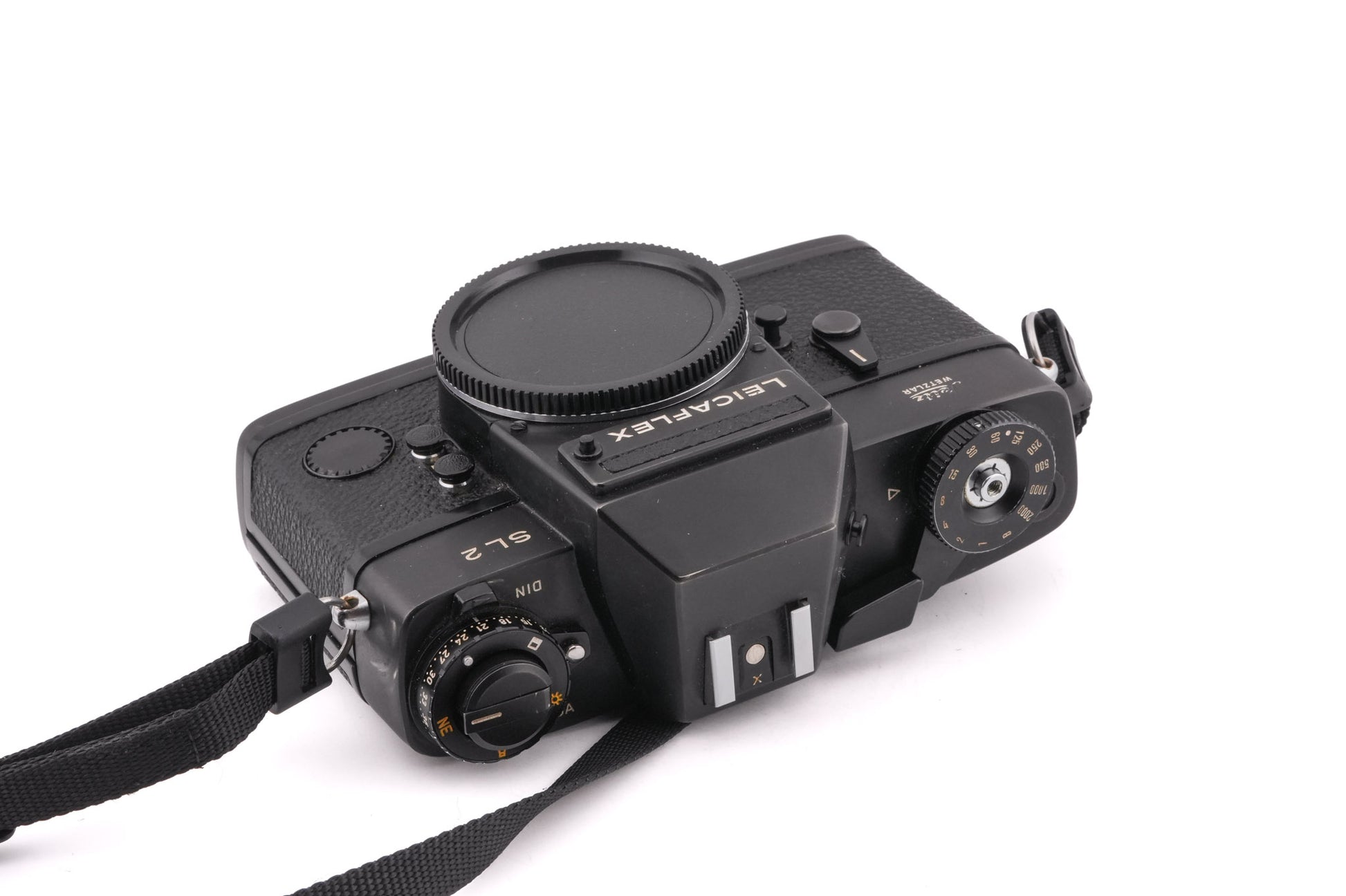 Manual focus R-mount 35mm SLR camera manufactured by Leica in Germany from 1974 to 1976. The camera has through-the-lens exposure metering and a self-timer with a 10s delay. Other features include a hot shoe and bright viewfinder with shutter speed and aperture readouts. The mirror had been redesigned, allowing lenses of 16 and 19mm focal length to be used. It takes a separate battery for the viewfinder illumination. Metal body available in black or silver finish.