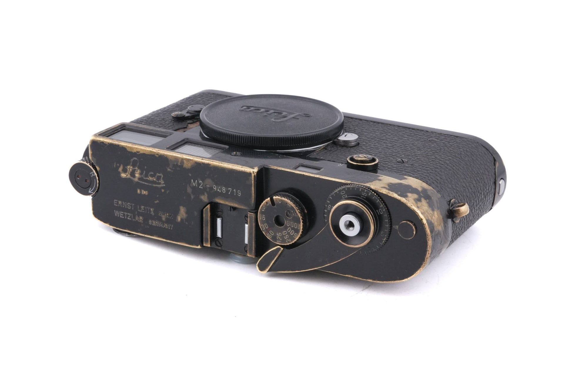 Manual focus M-mount 35mm rangefinder camera introduced by Leica in 1957. It was intended as a lower-cost alternative to the single-stroke M3. At launch, it was available without a self-timer, had an externally manually reset frame counter, a button rewind, and a 0.72x viewfinder with frame lines for 35mm, 50mm, and 90mm lenses. It became very popular due to its wide magnification finder and was known as the "wide-angle" Leica. The M2 experienced many changes over the production period and was given multiple designations to differentiate the models. The deciding factor for the designations was the presence, or lack of, a self-timer. This is the first version of the camera and was manufactured without a self-timer. This model has become known in catalogues as the M2X. A later special model introduced in 1962 also lacked the self-timer. Another significant change happened in 1958, when the button rewind was changed to a lever akin to the M3. This catalogue is for the button rewind version. Metal body available in black paint (KOOHE / 10800 /10300).