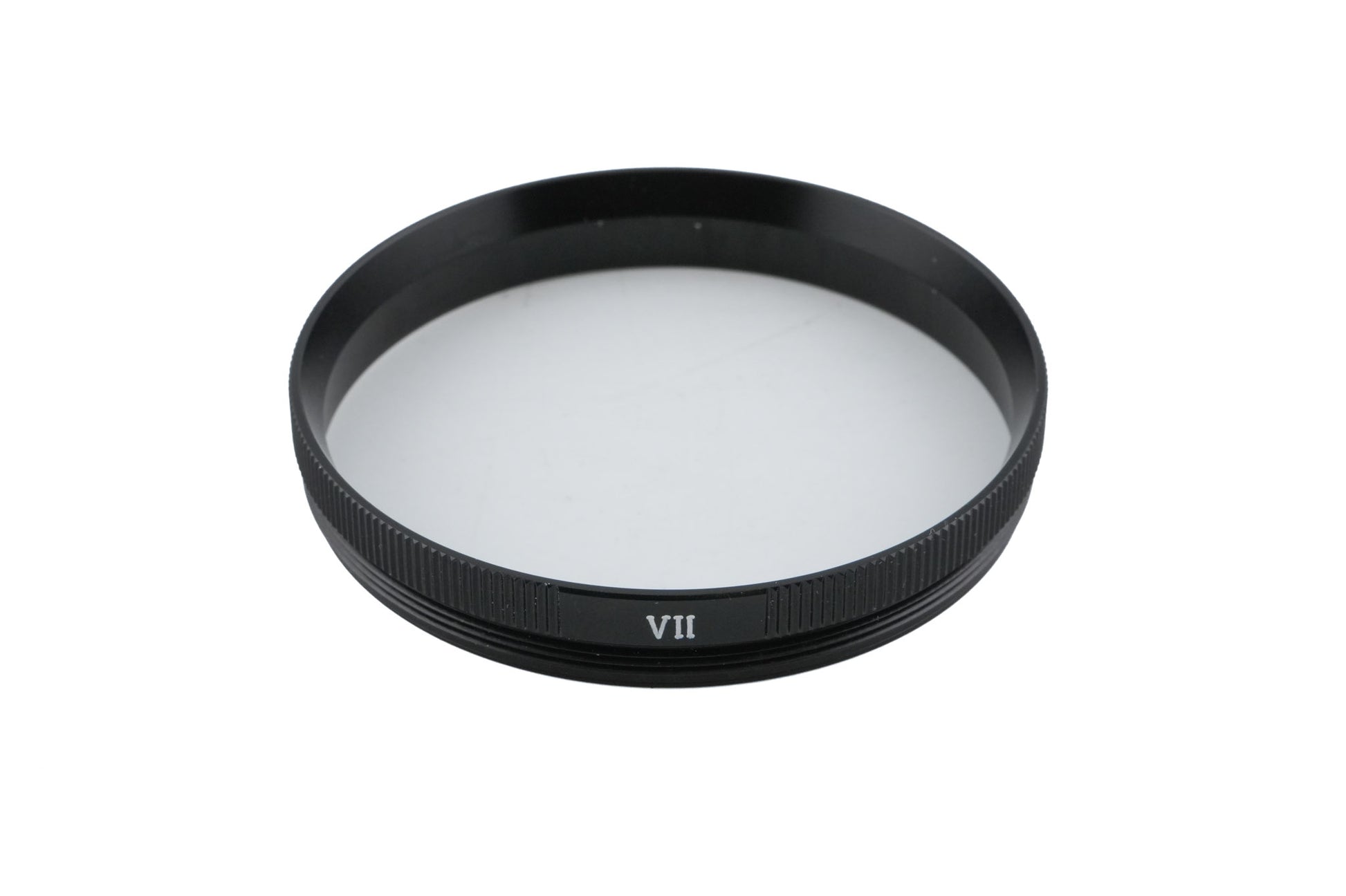 Retaining ring for Series 7 VII filters. Series filters are glass disks mounted in a threadless metal rim. They are attached to the lens with (an adapter and) a retaining ring. Metal construction in black.