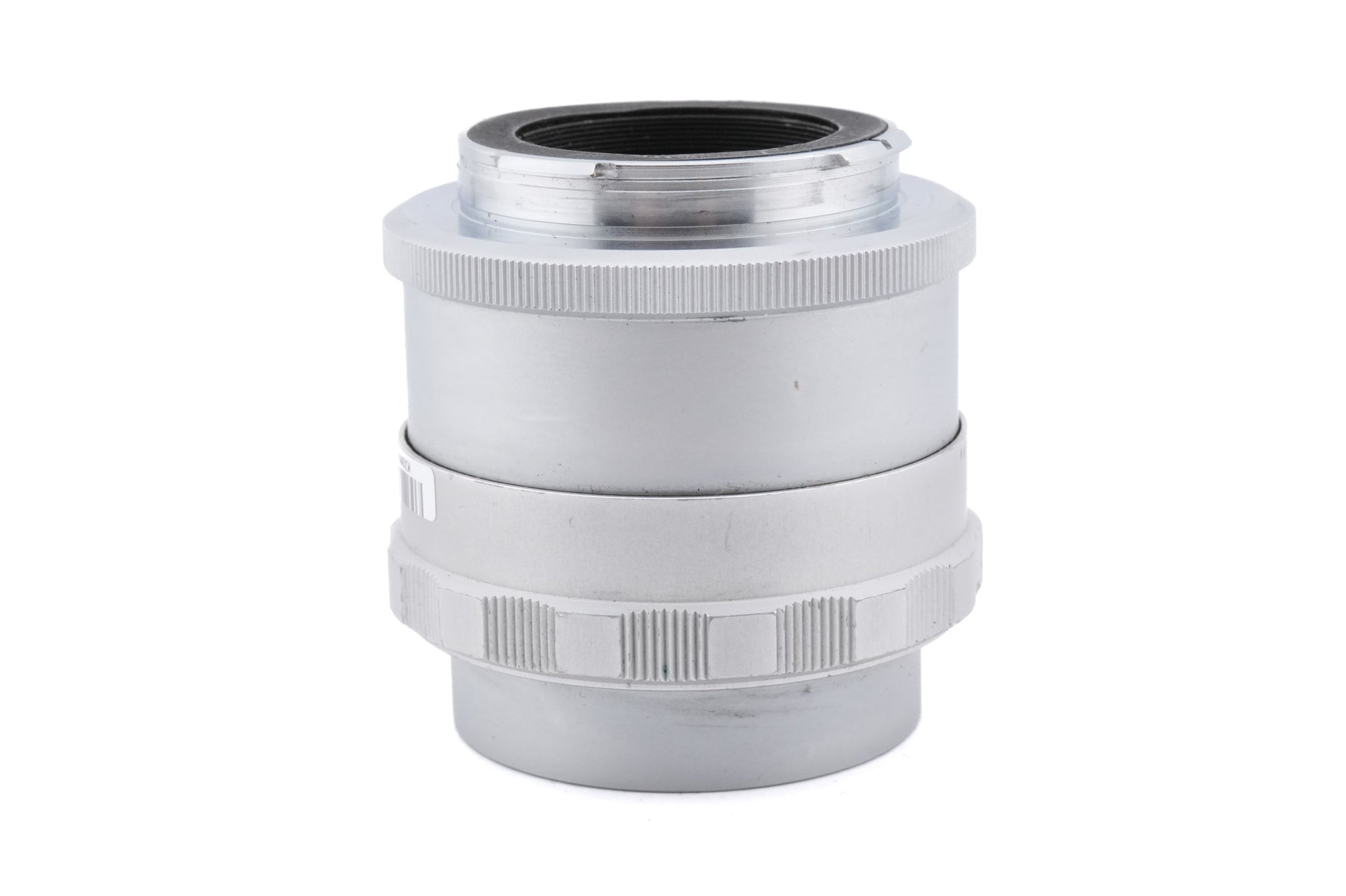 Universal focusing mount made by Leica. It is made for the 65mm Elmar, 90mm Elmarit, or 135mm Elmar and Hektor with the OTSRO extension tube. For Visoflex II and III. Metal body available in silver.