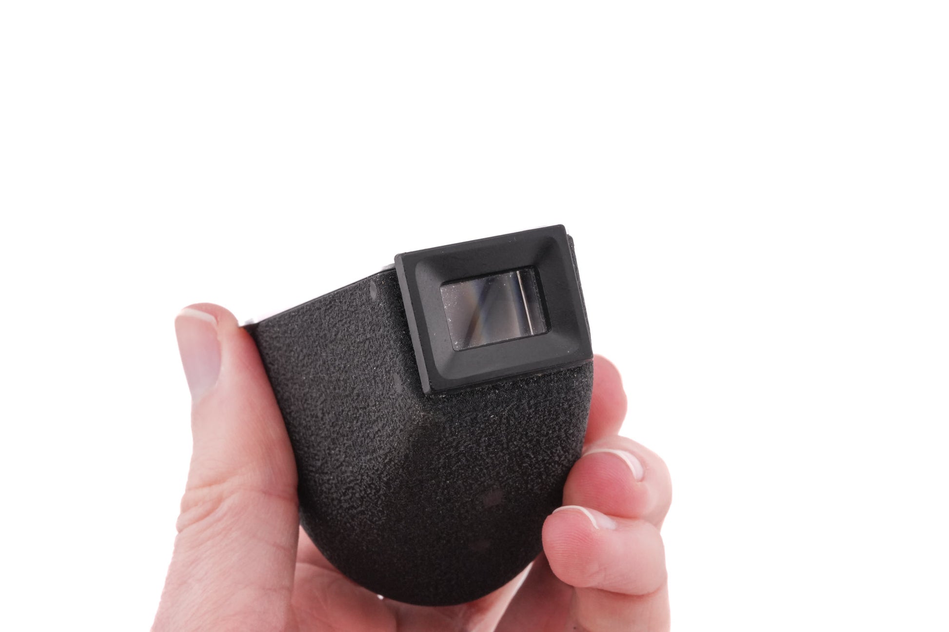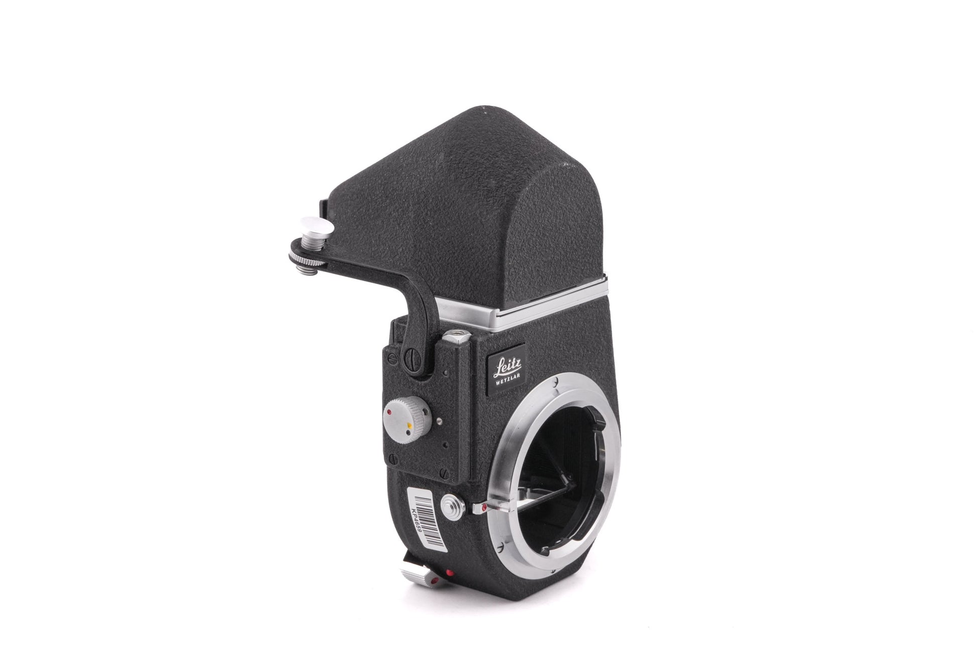 90° prism finder made for the Visoflex III by Leica. This model is compatible with the Leica M5. Metal body available in black.