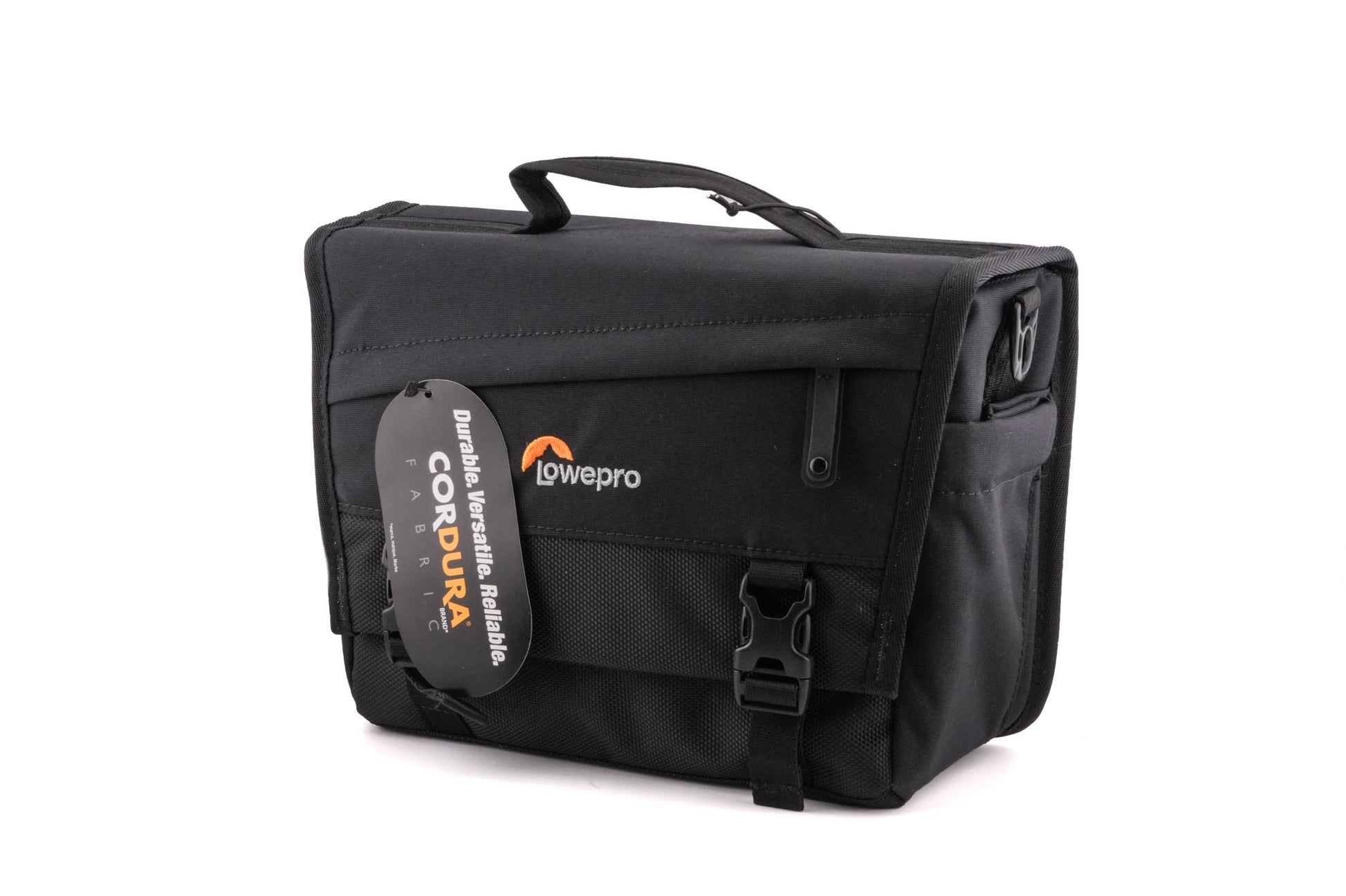 Shoulder bag for camera bodies and lenses made by Lowepro. Canvas construction available in gray and black.