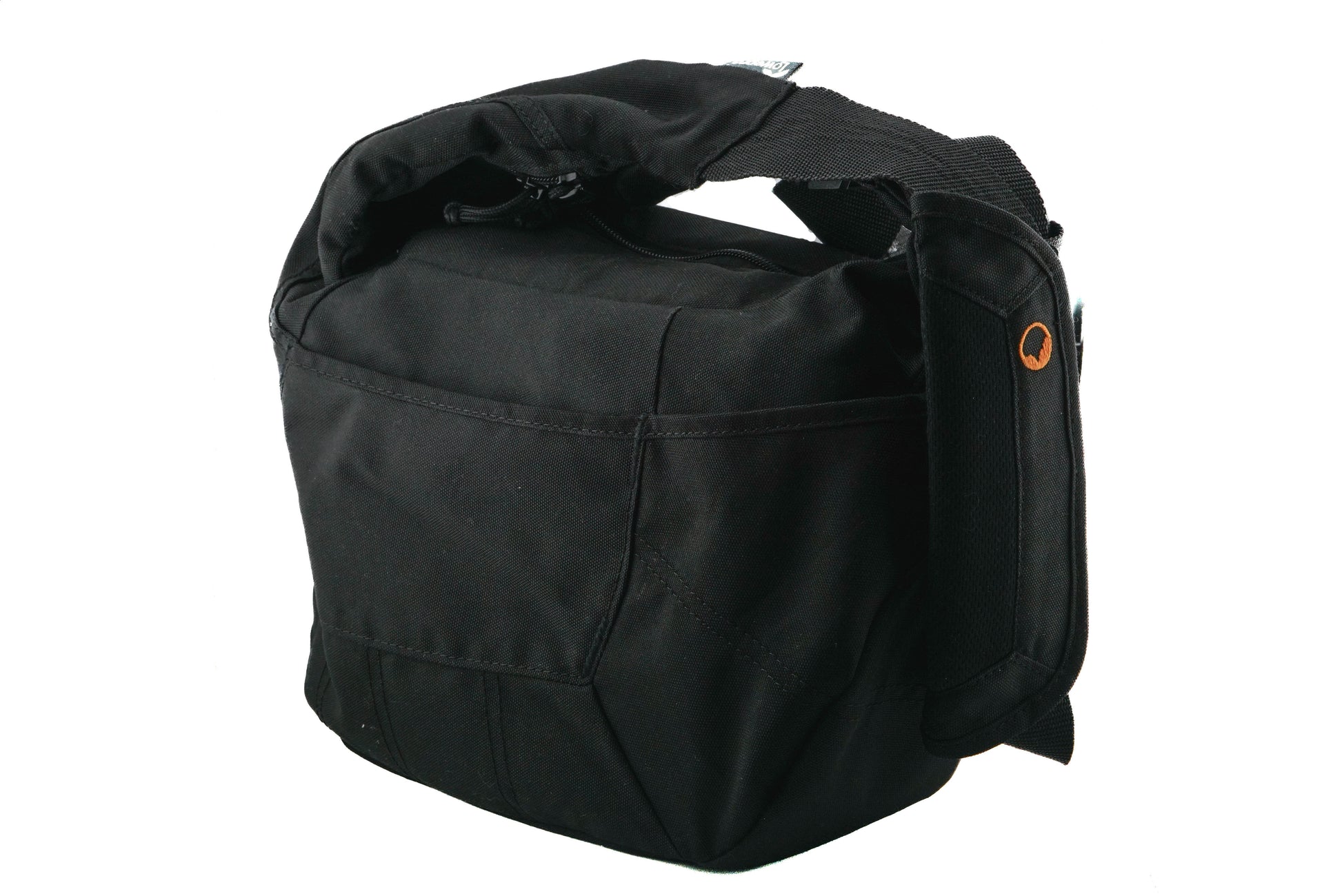Shoulder bag made by Lowepro. Fabric body available in black.