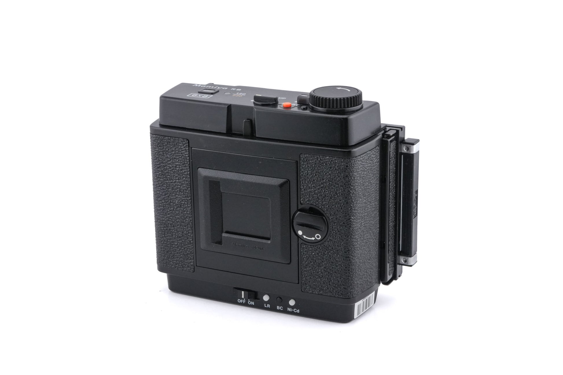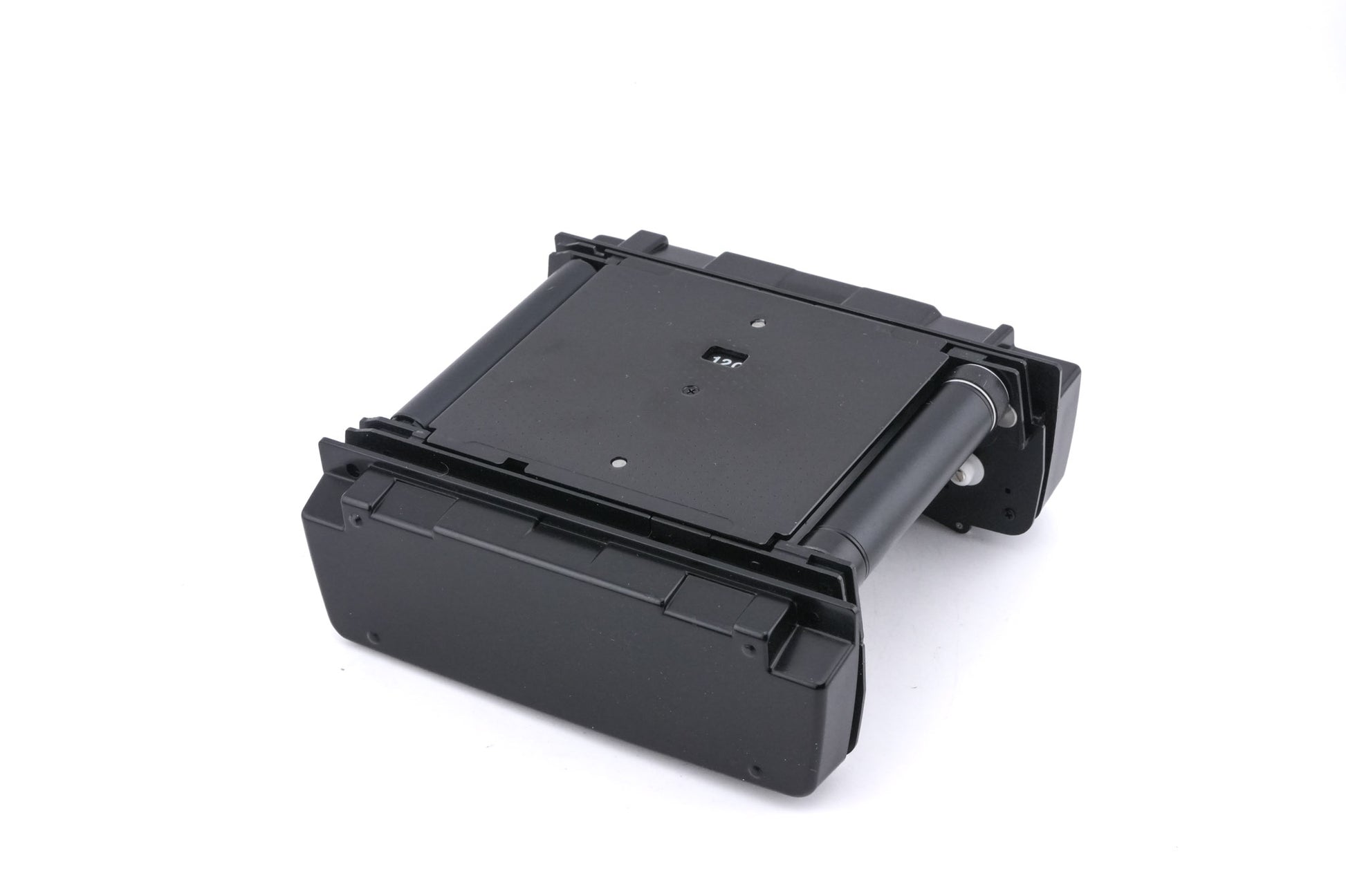 6x8 120 roll film back for Mamiya RB67 Pro-S/SD medium format SLR cameras. Not fully compatible with the RB67 Pro. Motorized film advance. Requires a 6x8 light baffle and a Pro-SD 6x8 revolving adapter to work as designed. Additionally 6x8 matte screen is used to get a full view on the finder. Supports both 120 and 220 formats. Plastic construction in black finish.