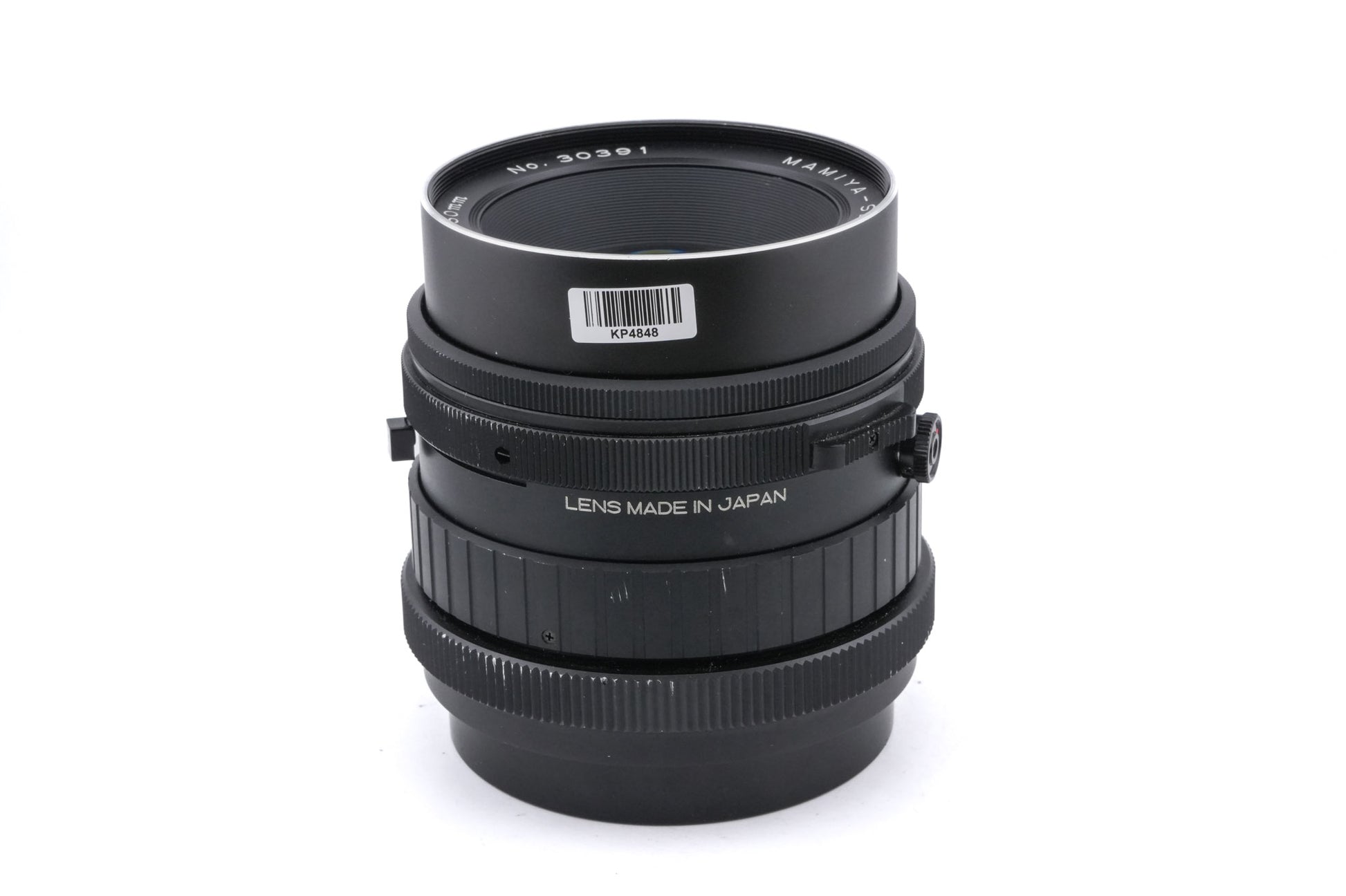 Manual focus telephoto lens made for RB67 mount 120 SLRs by Mamiya starting in 1977. It gives the equivalent field of view to a 75mm lens on full frame/35mm and has a soft-focus disc inside that blurs the edges of the frame. Metal body available in black.