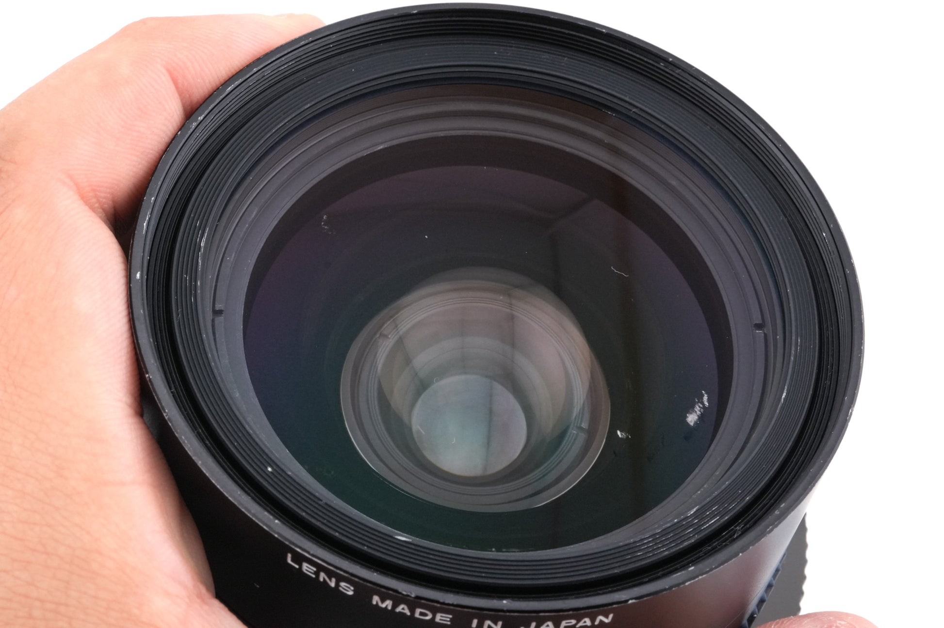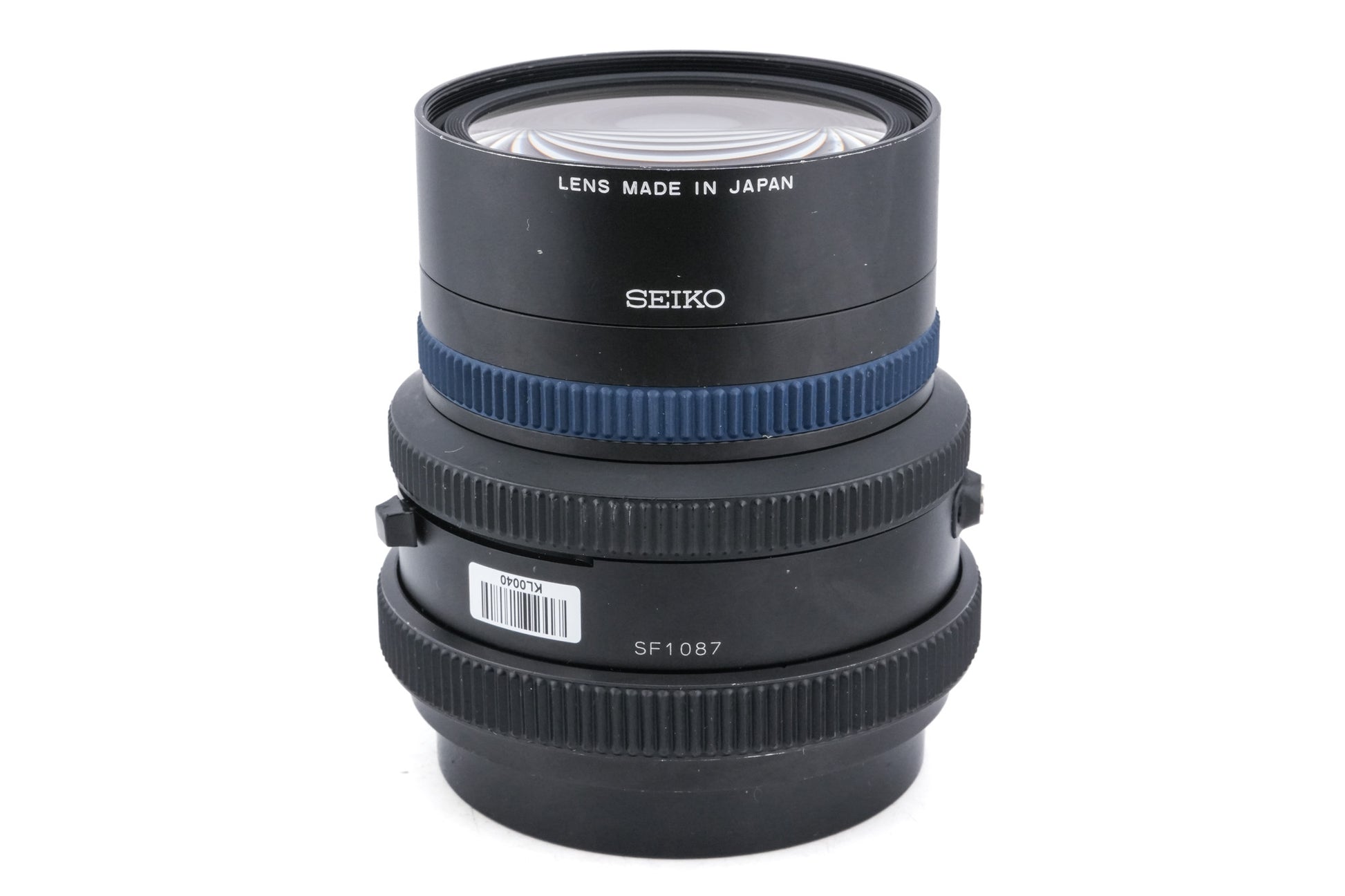 Manual focus wide angle lens made for the RZ67 system by Mamiya. It uses Ultra Low Dispersion (ULD) lens elements for improved sharpness and a floating element system ensures high contrast and resolution from corner to corner. It gives the equivalent field of view to a 25mm lens on full frame/35mm. Metal body available in black.