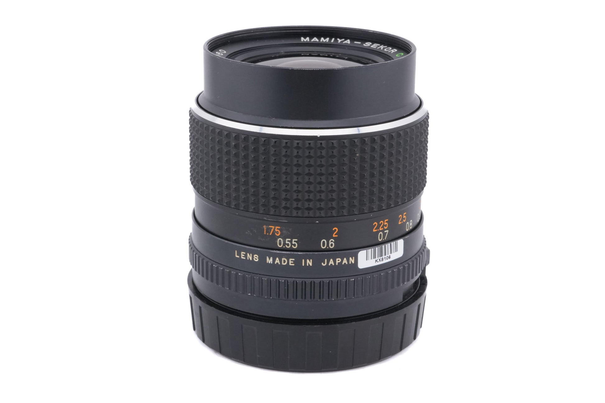 Manual focus wide-angle lens made for the Mamiya 645 system by Mamiya. The 35mm equivalent focal length is 34mm. Metal body available in black.
