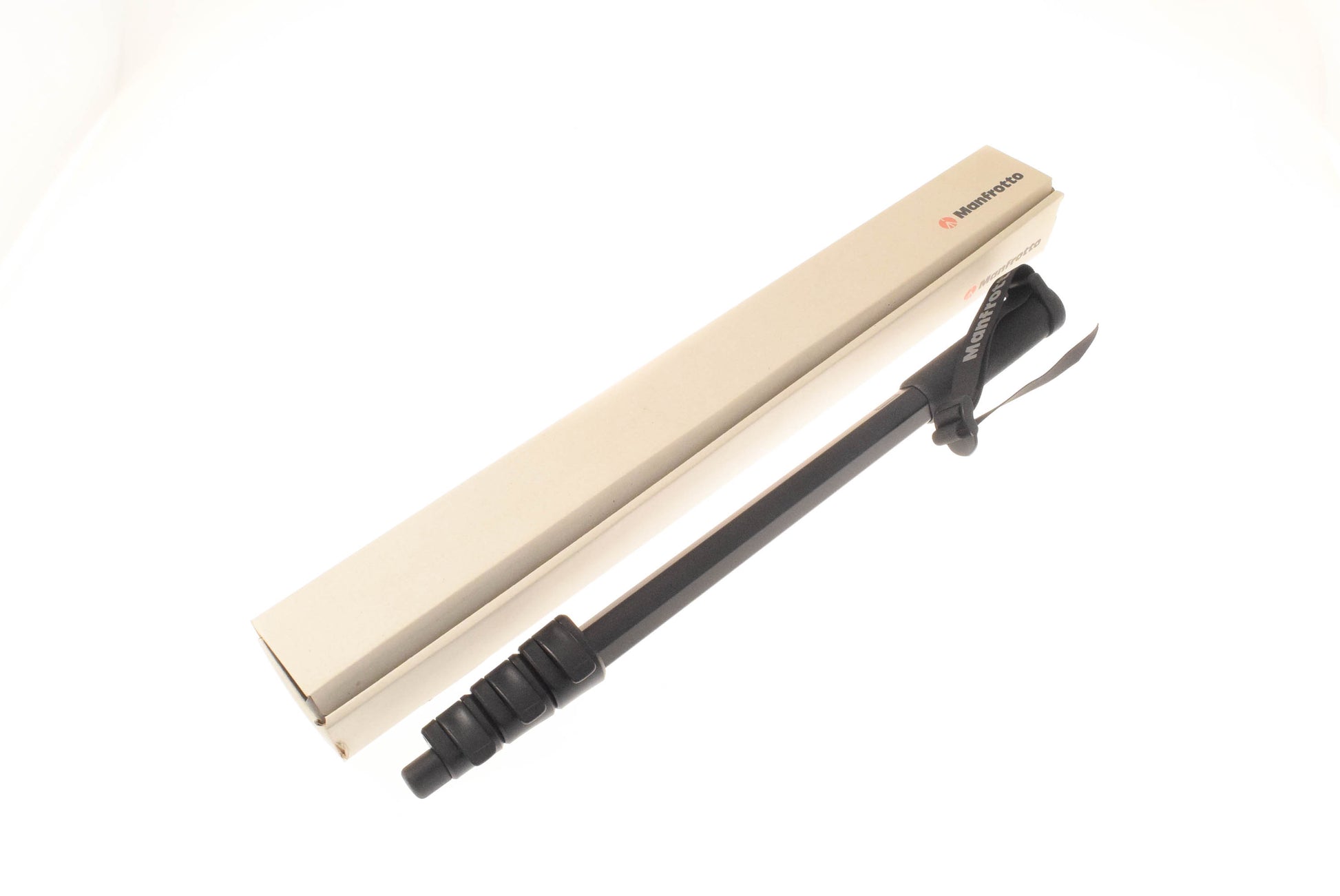 Aluminum monopod by Manfrotto. 1/4", 3/8" screw attachment.