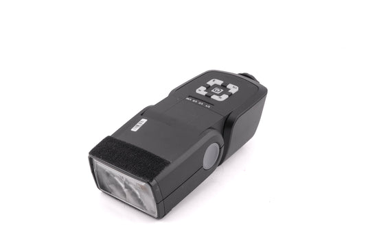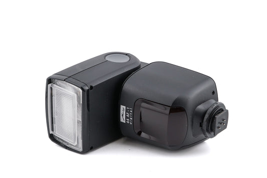 Automatic TTL flash made for EF-mount DSLR cameras introduced by Metz. It has an integrated wide-angle diffuser and a zoom range from 24 to 105mm. Plastic body available in black.