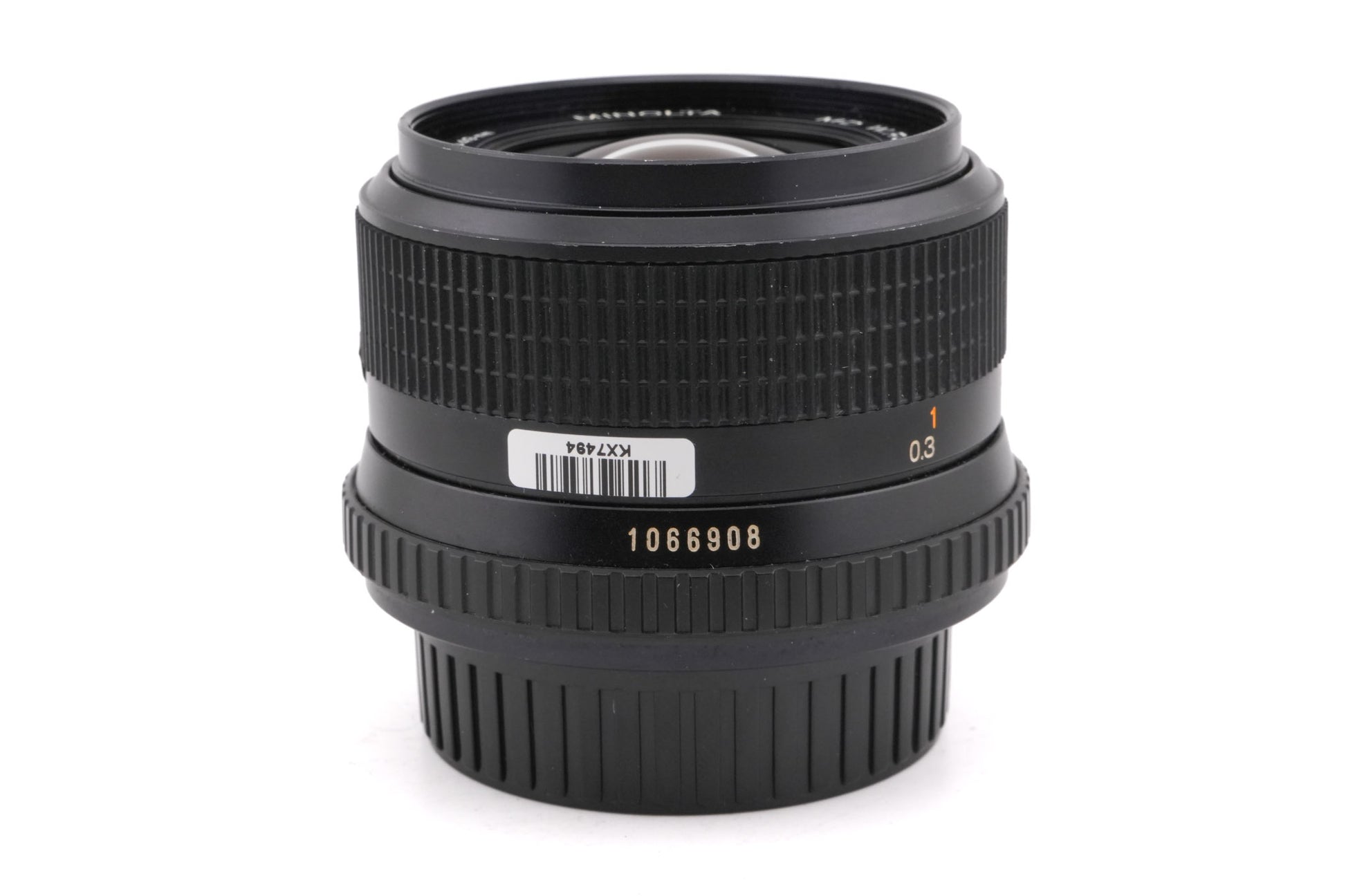Manual focus wide-angle lens made for MD/SR-mount 35mm SLRs by Minolta starting in 1977. Metal body available in black.