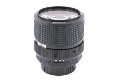 Manual focus standard zoom lens made for MD-mount SLR cameras by Minolta. The successor of this lens is named the same but has a macro mode with light blue markings near the "70" mark on the zoom ring. It has in-between aperture stops. Metal body available in black.