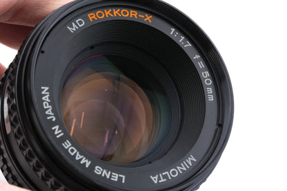 This Minolta 50mm f1.7 MD Rokkor-X includes: