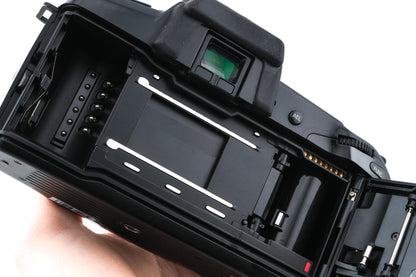 Autofocus AF mount 35mm SLR released by Minolta in 1991. It supports Minolta's program card system for advanced program control, but can be used in normal PSAM modes as well. It also supports the power zoom and advanced features of Minolta's xi series of lenses. The camera features a 14-segment matrix light meter, spot metering capabilities, and an eye-start system that activates the camera's power, meter, and focus when you put your eye to the finder. It also looks a bit like a spaceship. Plastic body available in black.