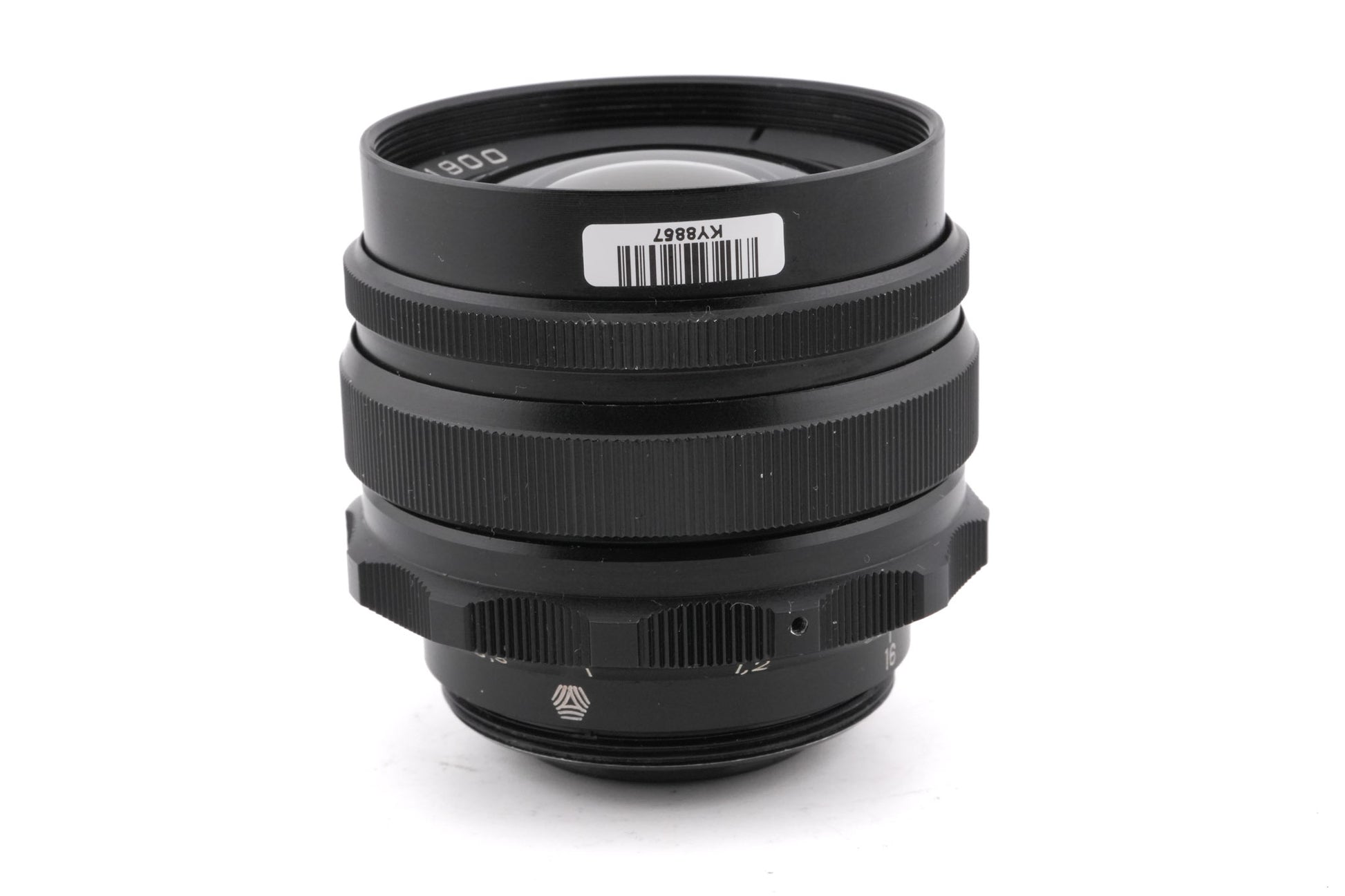 Manual focus wide normal lens made for M42 mount SLR cameras. The optical formula is copied from the Zeiss Flektogon and it was manufactured by KMZ, VOMZ, ZOMZ, and ZA factories. Metal body available in black.