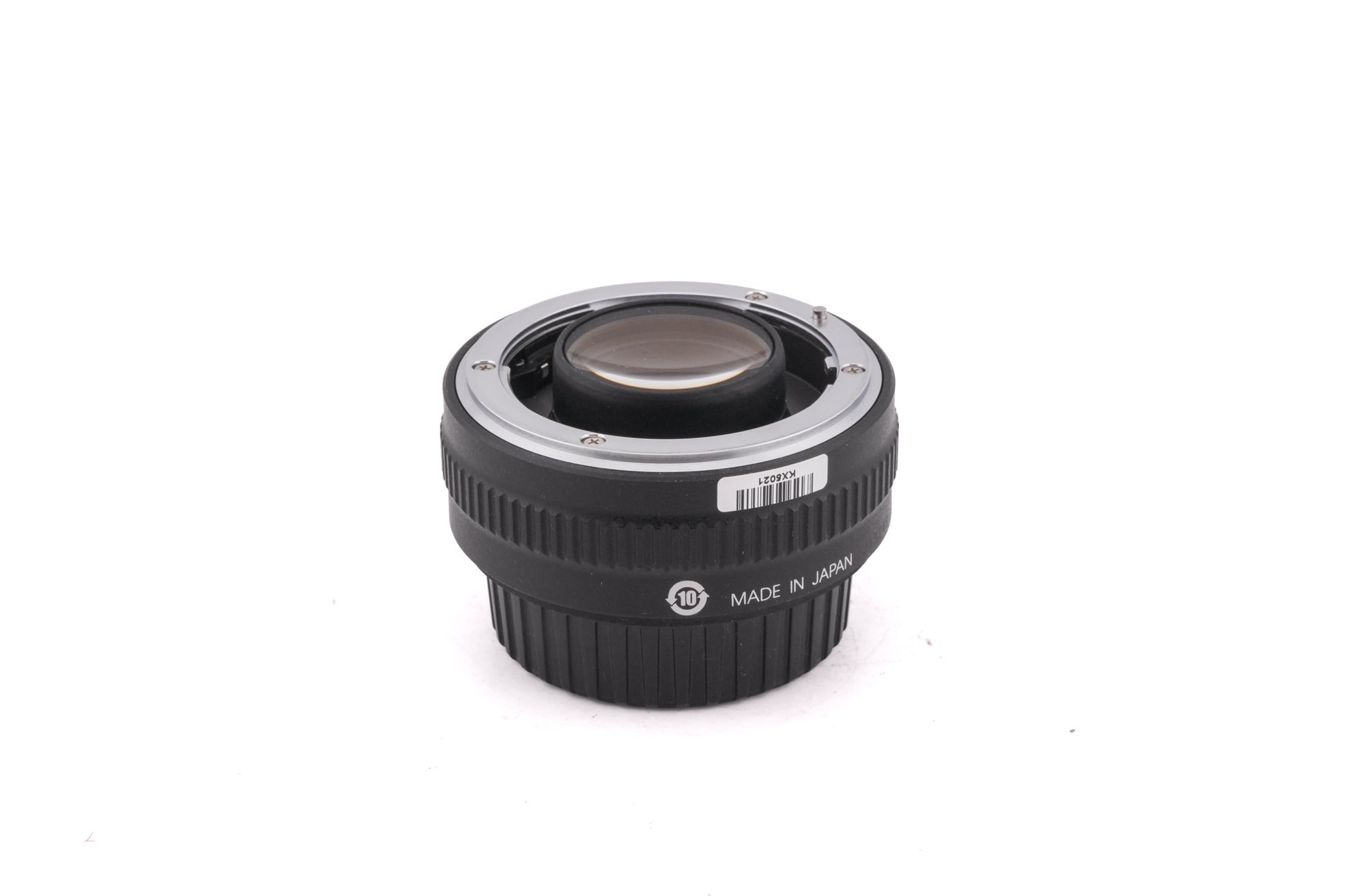 Teleconverter made for F-mount lenses and cameras introduced by Nikon. It multiplies the focal length by 1.4x without affecting image quality, focus accuracy, or image stabilization. It has fluorine-coated front and rear elements. Metal body available in black.