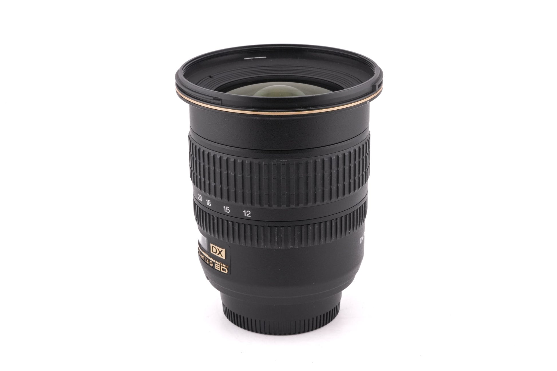 Autofocus wide-angle zoom lens made for DX-mount DSLR cameras by Nikon introduced in 2003. It uses a Silent Wave Motor for focusing and has Extra-low Dispersion and aspherical lens elements. Metal and plastic body available in black.