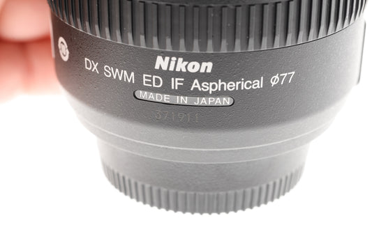 Autofocus wide-angle zoom lens made for DX-mount DSLR cameras by Nikon introduced in 2003. It uses a Silent Wave Motor for focusing and has Extra-low Dispersion and aspherical lens elements. Metal and plastic body available in black.