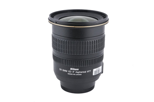 Autofocus wide-angle zoom lens made for DX-mount DSLR cameras by Nikon introduced in 2003. It uses a Silent Wave Motor for focusing and has Extra-low Dispersion and aspherical lens elements. Metal and plastic body available in black.