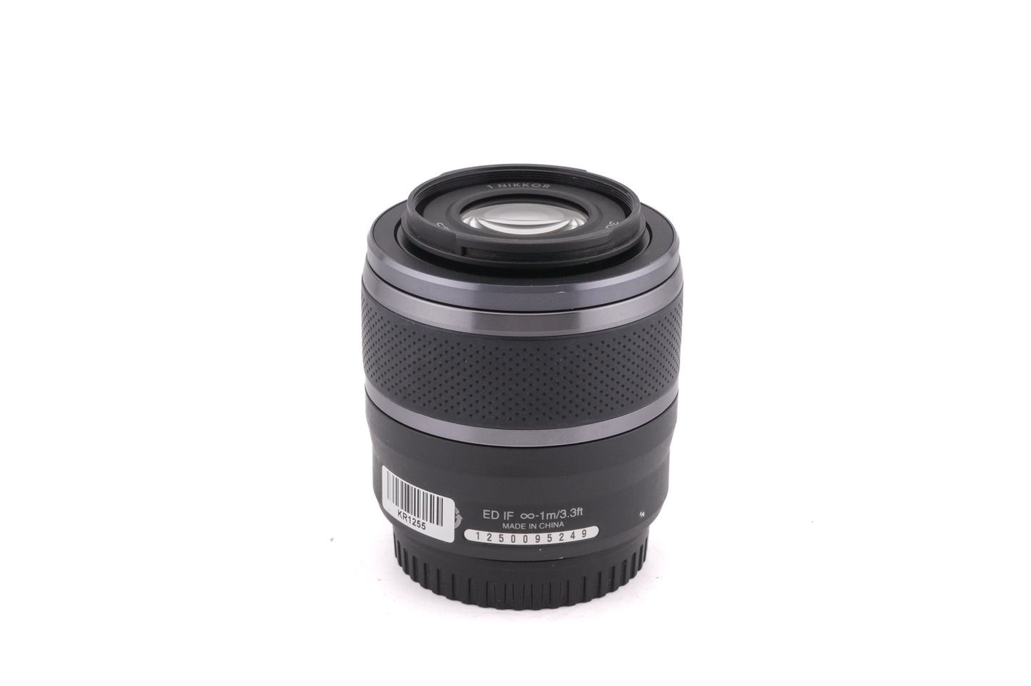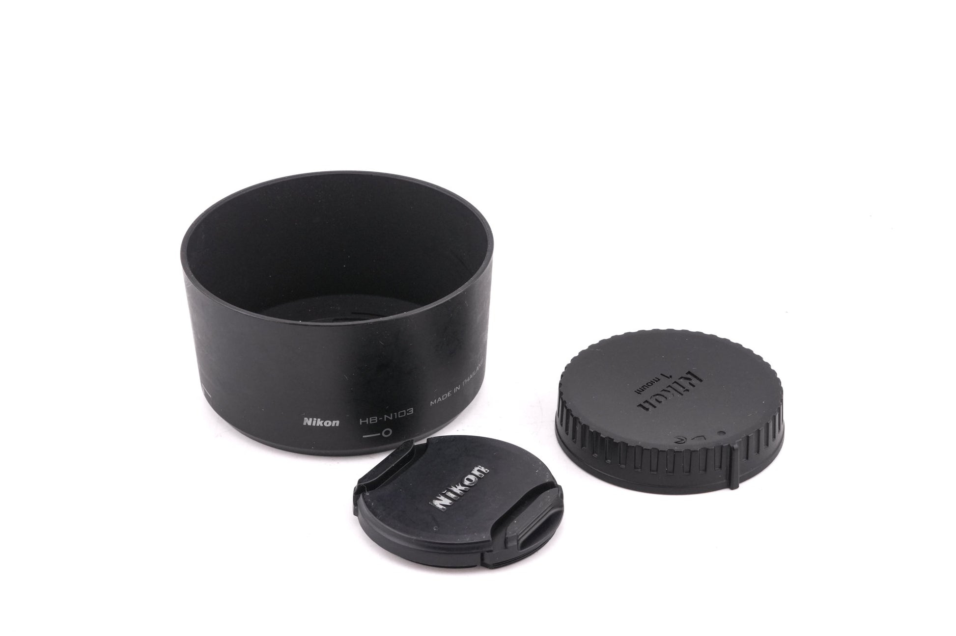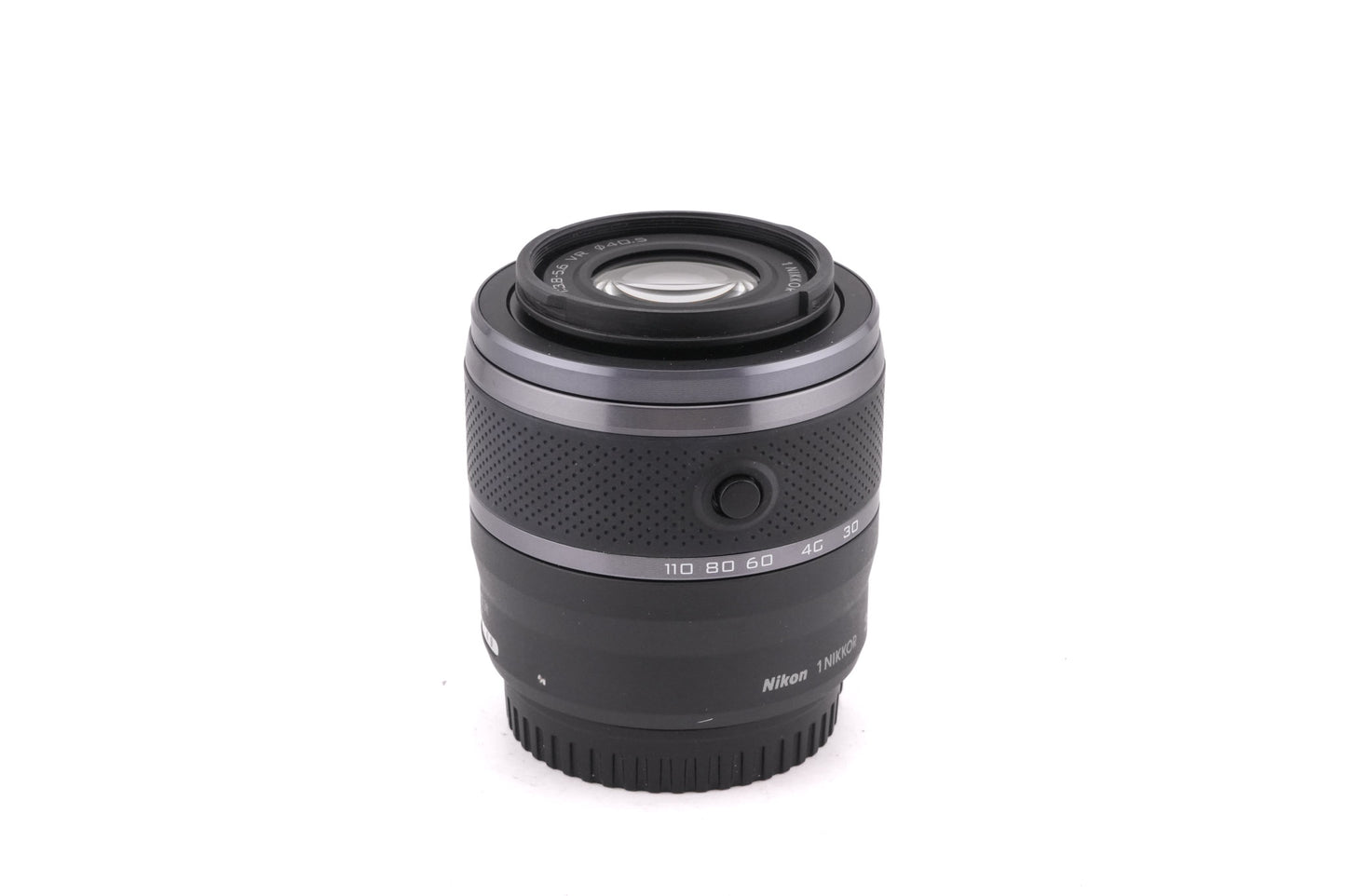 Autofocus telephoto zoom lens made for 1-mount mirrorless cameras by Nikon. It gives the equivalent field of view to an ~80-300mm lens on full frame/35mm. Plastic body available in white, black, dark red, and orange.