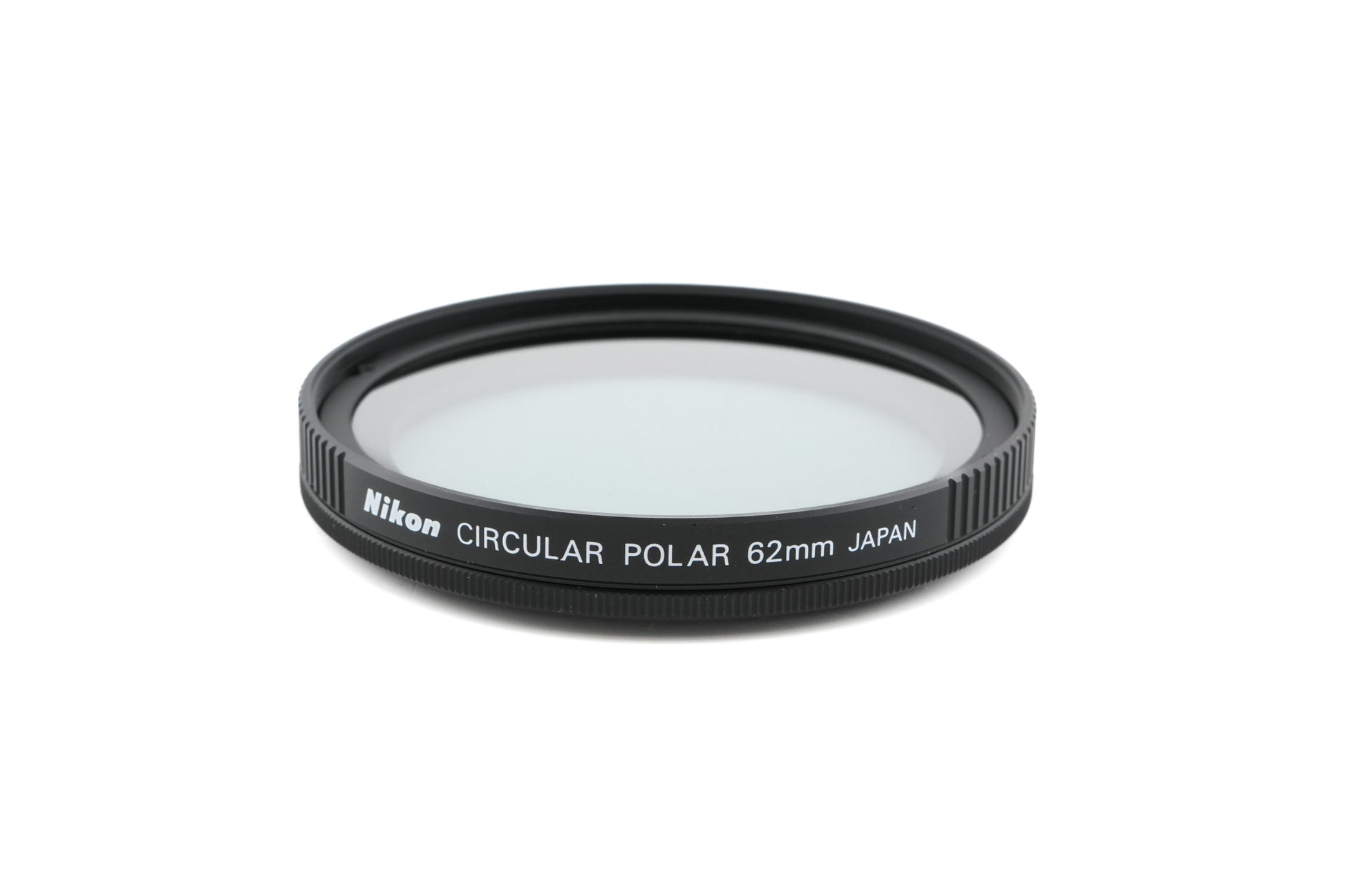 Circular polarizing filter for lenses with 62mm filter threads made by Nikon. Reduces reflections and provides a richer color. Metal construction available in black.