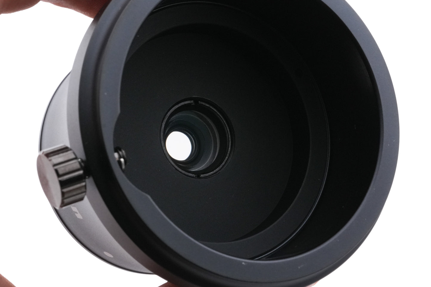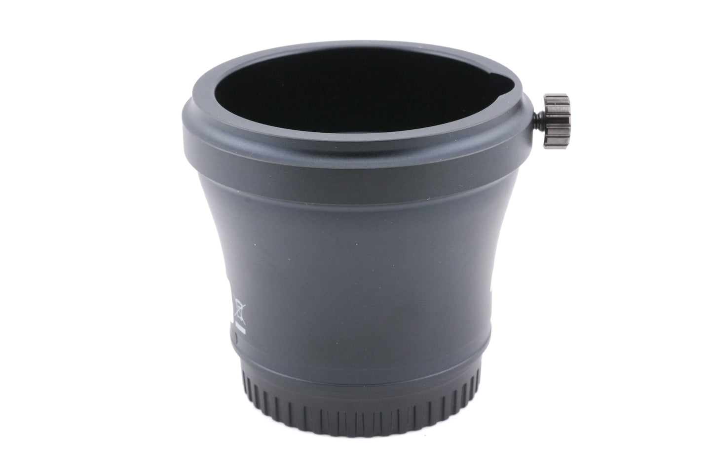 Adapter for digiscoping which connects a Nikon 1 body to a Nikon Fieldscope with an eyepiece, enabling super-telephoto shooting.
