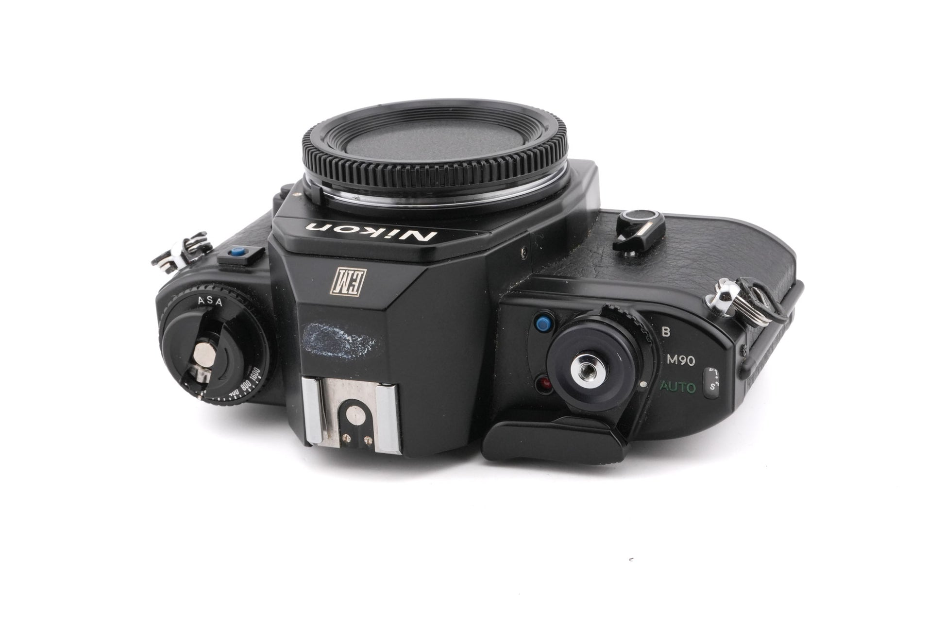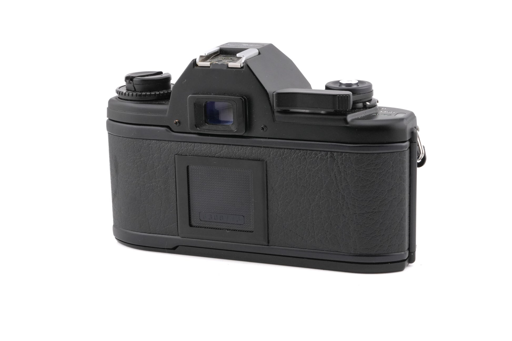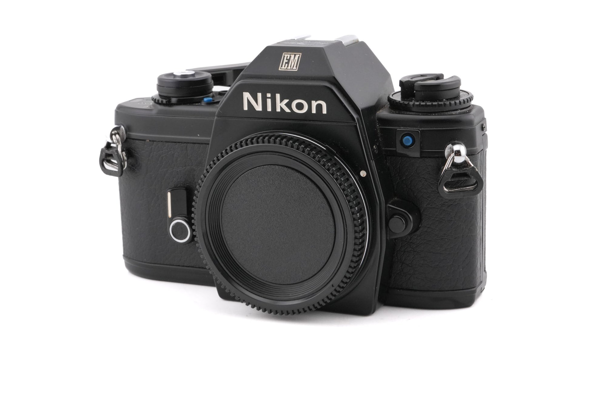 Manual focus F-mount 35mm SLR camera released by Nikon in 1979. It has aperture priority auto-exposure only with a mechanical flash sync of 1/90s. Plastic and metal body available in black.