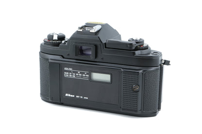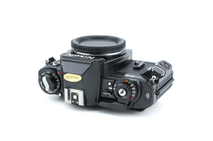 Manual focus F-mount 35mm SLR camera released by Nikon in 1982. It was the first Nikon SLR with programmed auto-exposure. Plastic body available in black & silver.