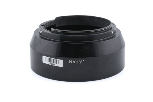 Snap-on metal lens hood made by Nikon for select Nikon F lenses with 52mm filter threads. Attaches via locking button. Metal body available in black.