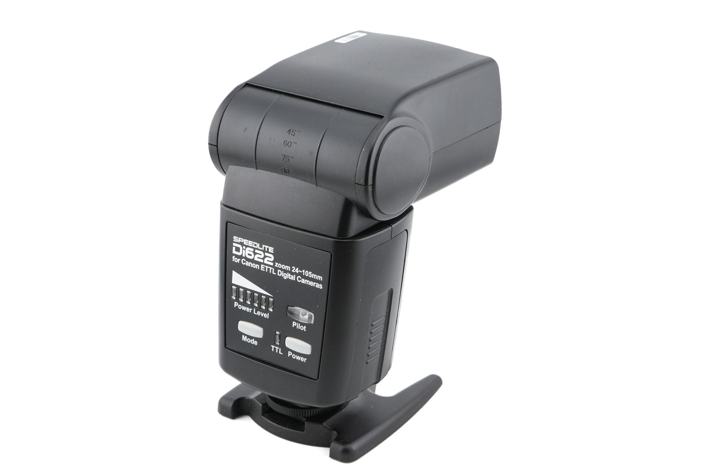 Fully automatic TTL flash made for Canon EF introduced by Nissin. It has manual mode and slave function as well as a tilting flash head. Plastic body available in black.