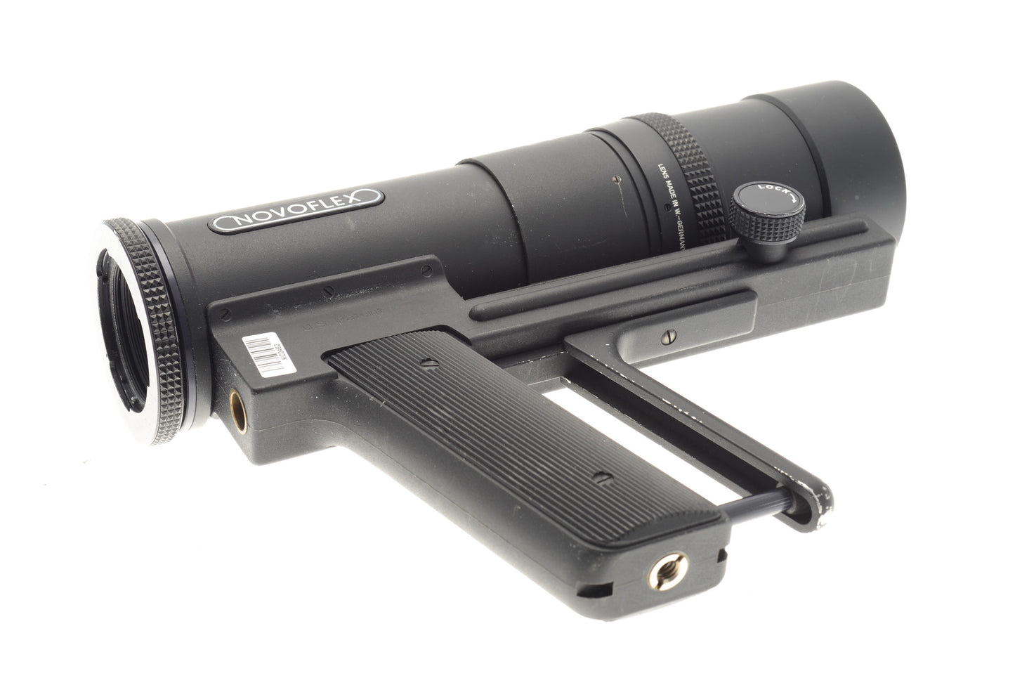 200mm telephoto lens with PIGRIFF (Pistol Grip Follow Focus) system. Made for many systems, with interchangeable adapters.