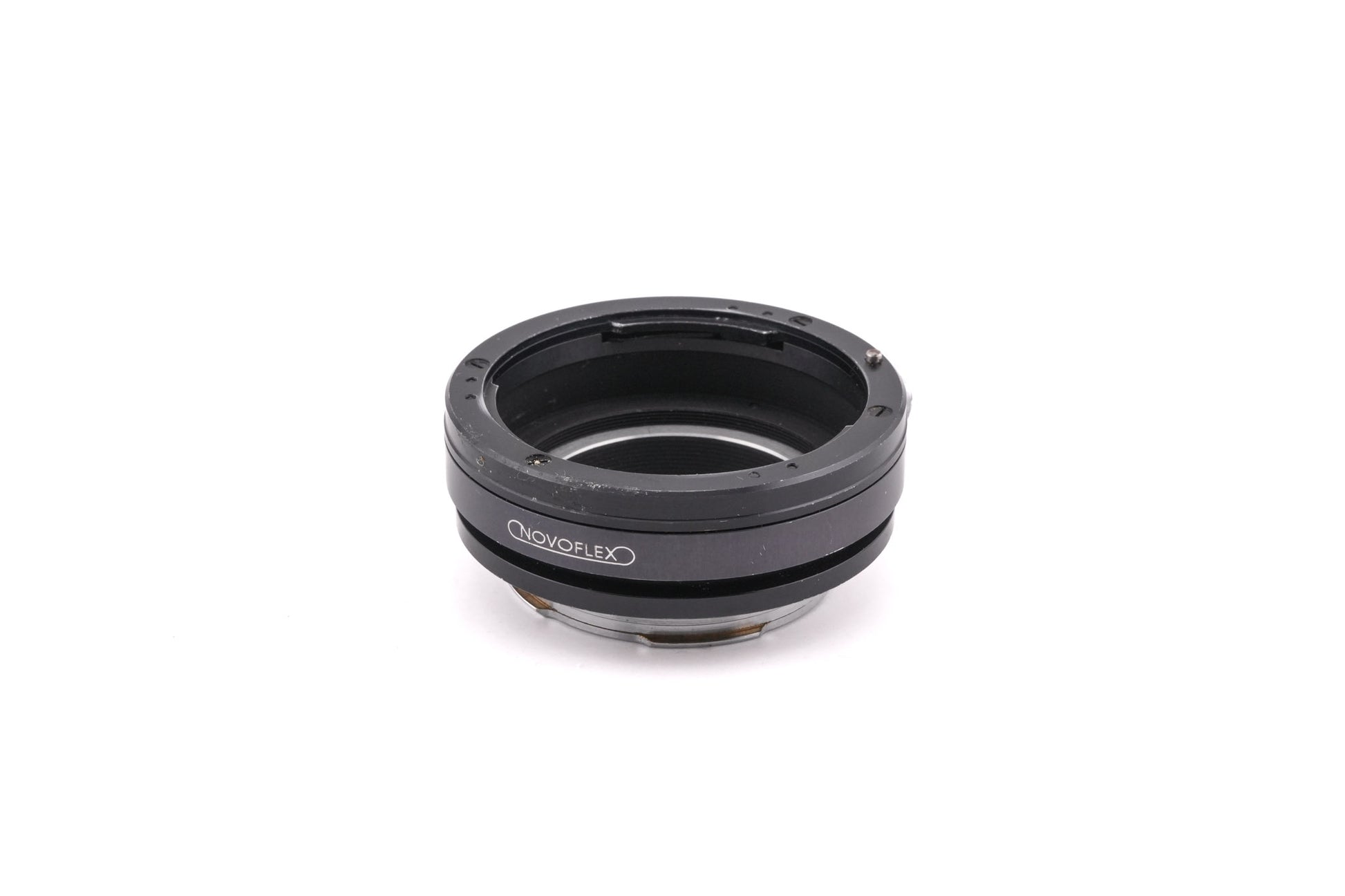 Lens adapter made for mounting Nikon F-mount lenses to Leica M-mount cameras, introduced by Novoflex. Metal body available in black.